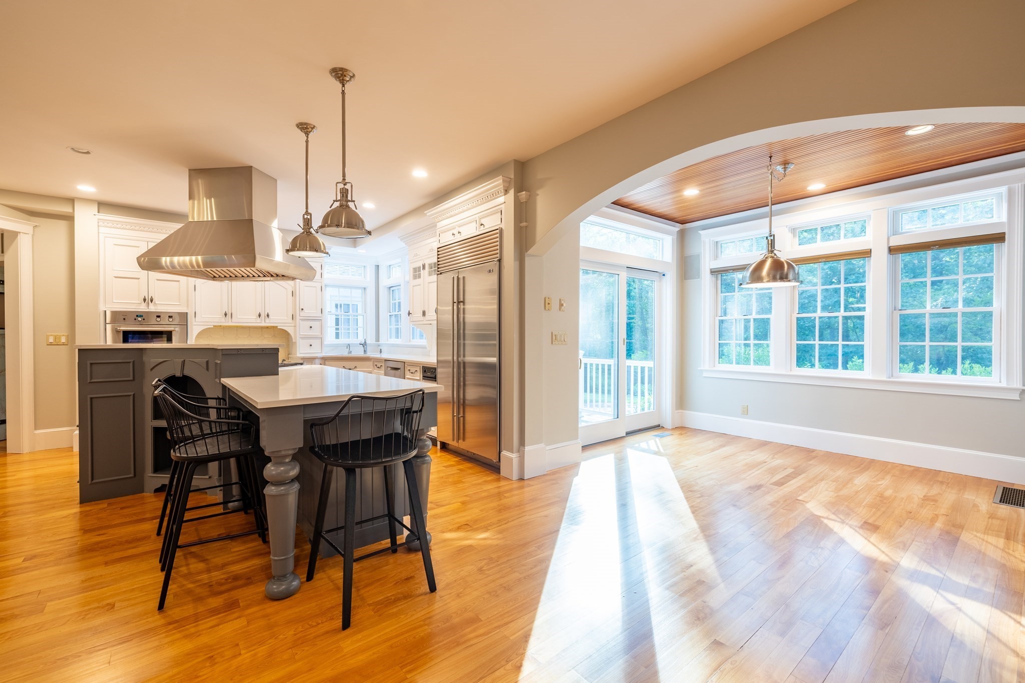 - Balcony / Deck, Cabinets - Upgraded, Countertops - Stone/Granite/Solid, Countertops - Upgraded, Dining Area, Flooring - Hardwood, Kitchen Island, Lighting - Overhead, Lighting - Pendant, Pantry, Recessed Lighting, Slider, Stainless Steel Appliances