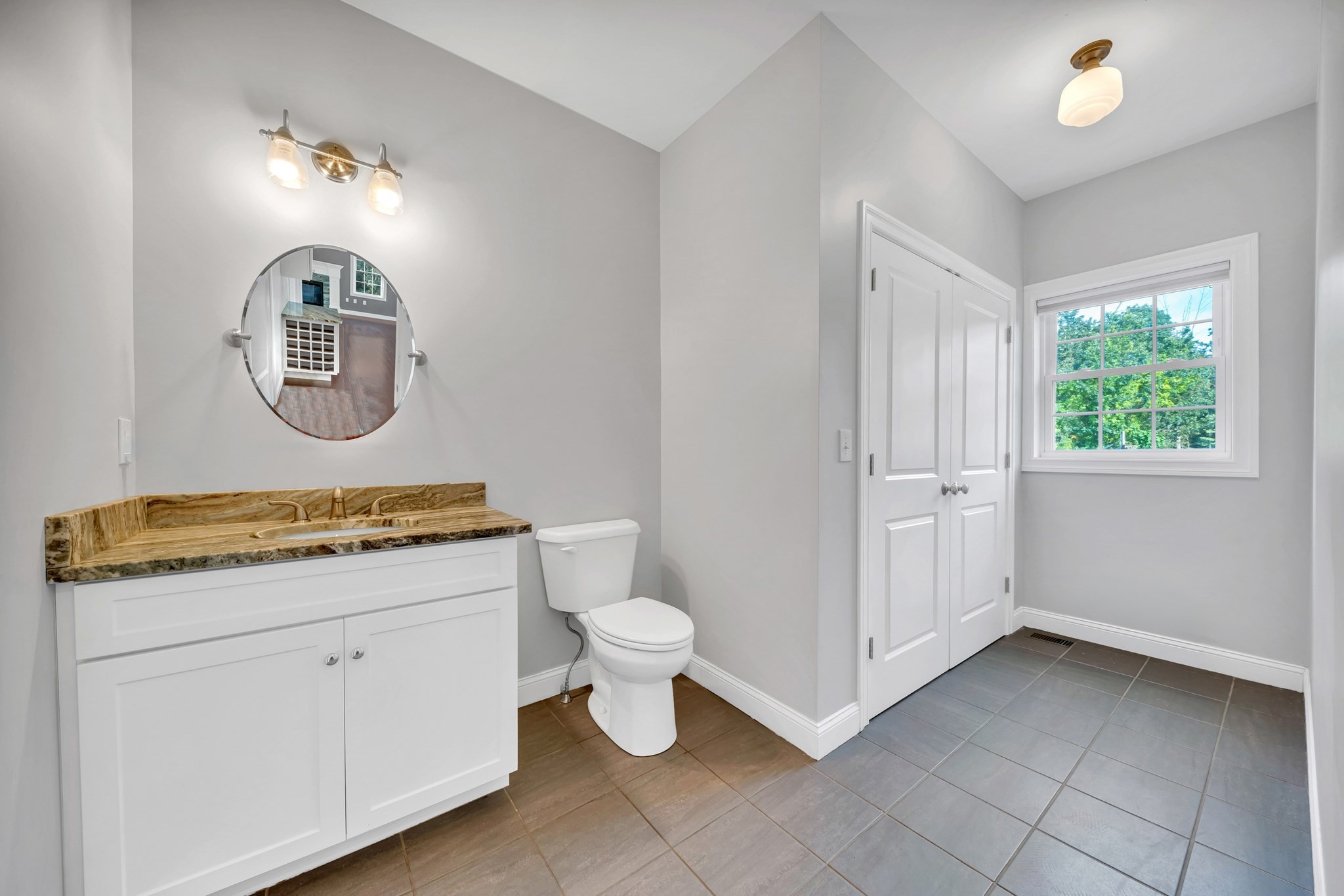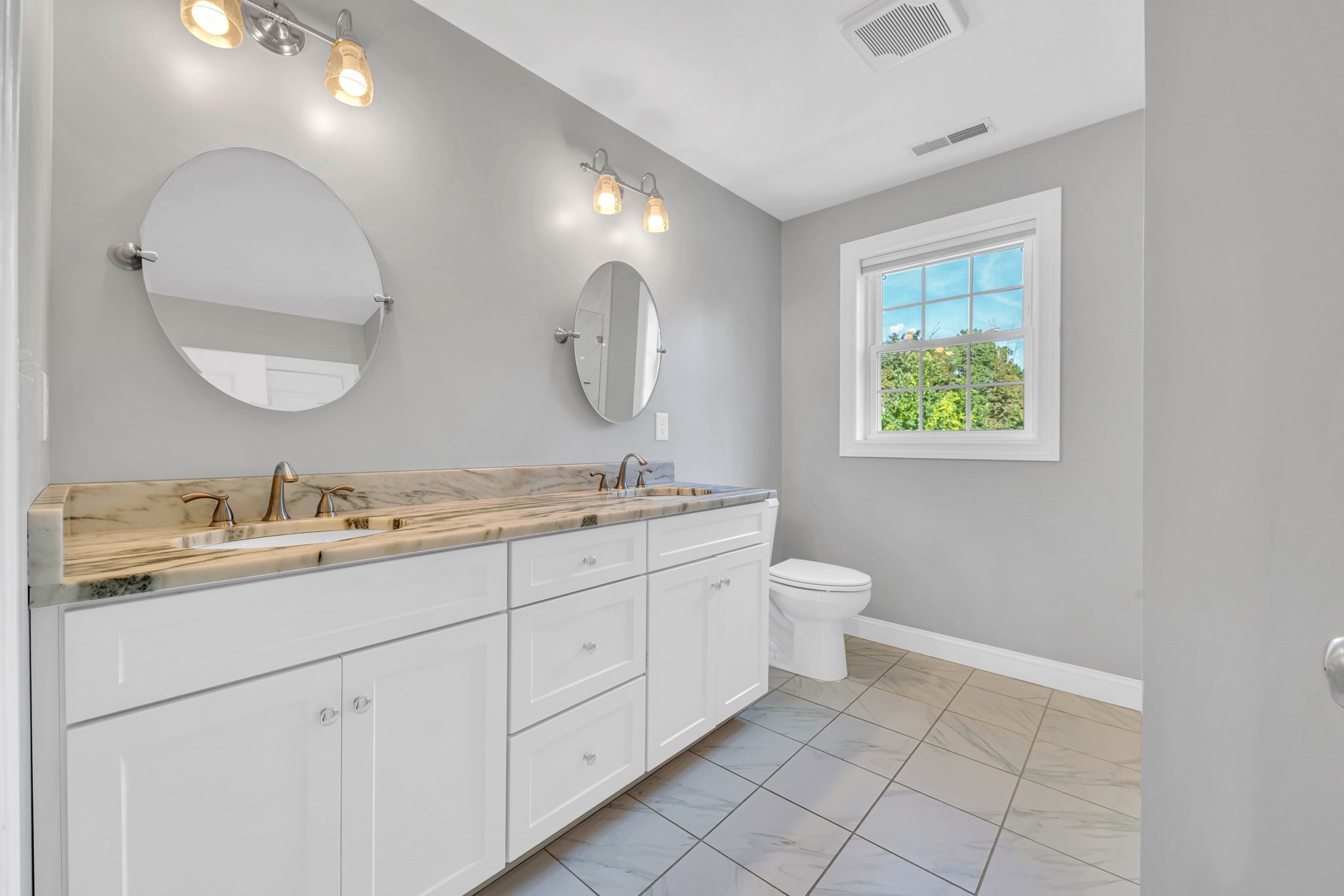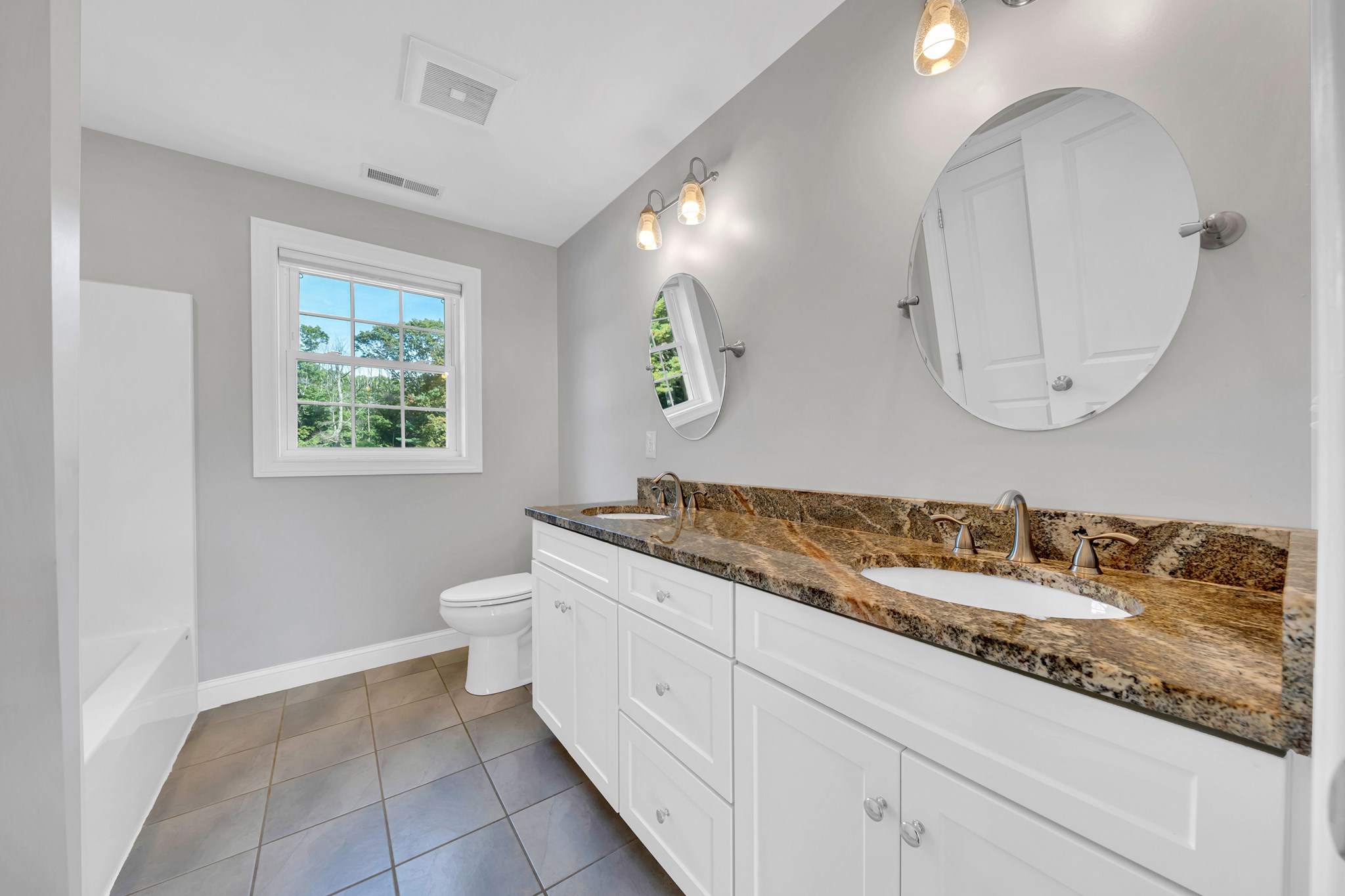 - Bathroom 1 Features: Bathroom - Double Vanity/Sink, Bathroom - Full, Bathroom - Tiled With Shower Stall, Cabinets - Upgraded, Closet - Linen, Countertops - Stone/Granite/Solid, Countertops - Upgraded, Double Vanity, Flooring - Stone/Ceramic Tile, Lighting - Sconce, Recessed Lighting