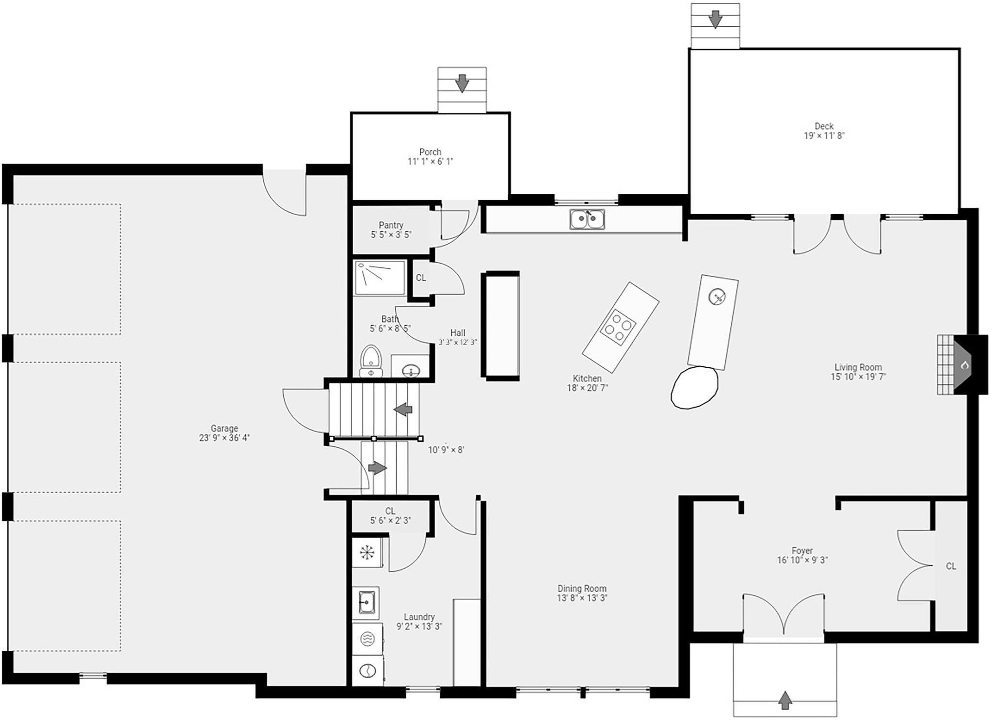- Living Room Level: First Floor