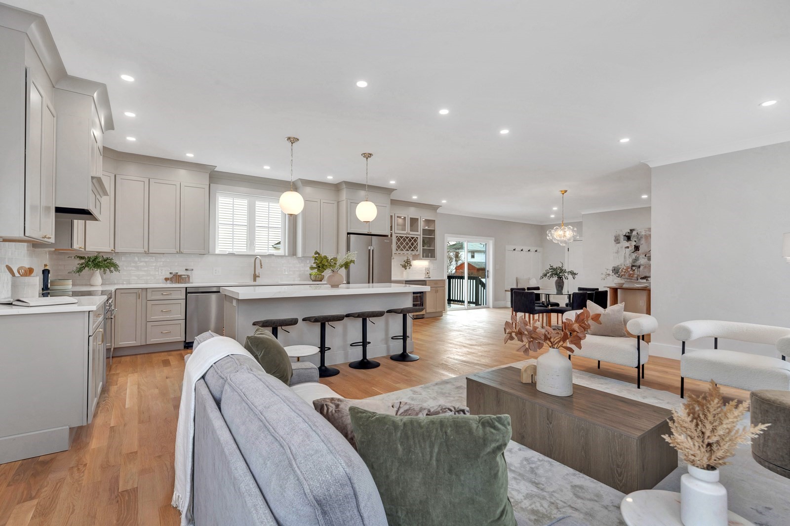 - Living Room Features: Fireplace, Flooring - Hardwood, Open Floor Plan, Recessed Lighting
