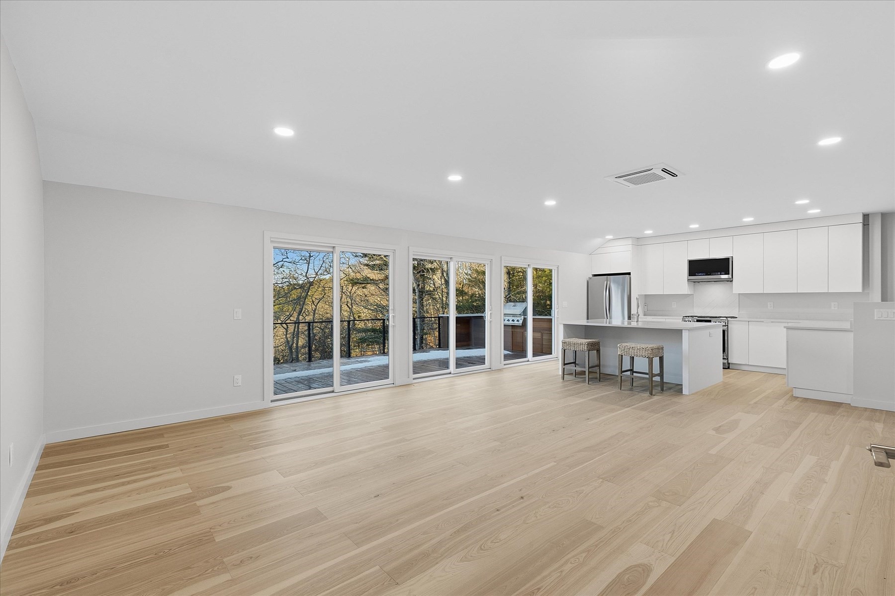 - Living Room Features: Bathroom - Half, Deck - Exterior, Exterior Access, Flooring - Engineered Hardwood, Open Floor Plan, Recessed Lighting, Slider