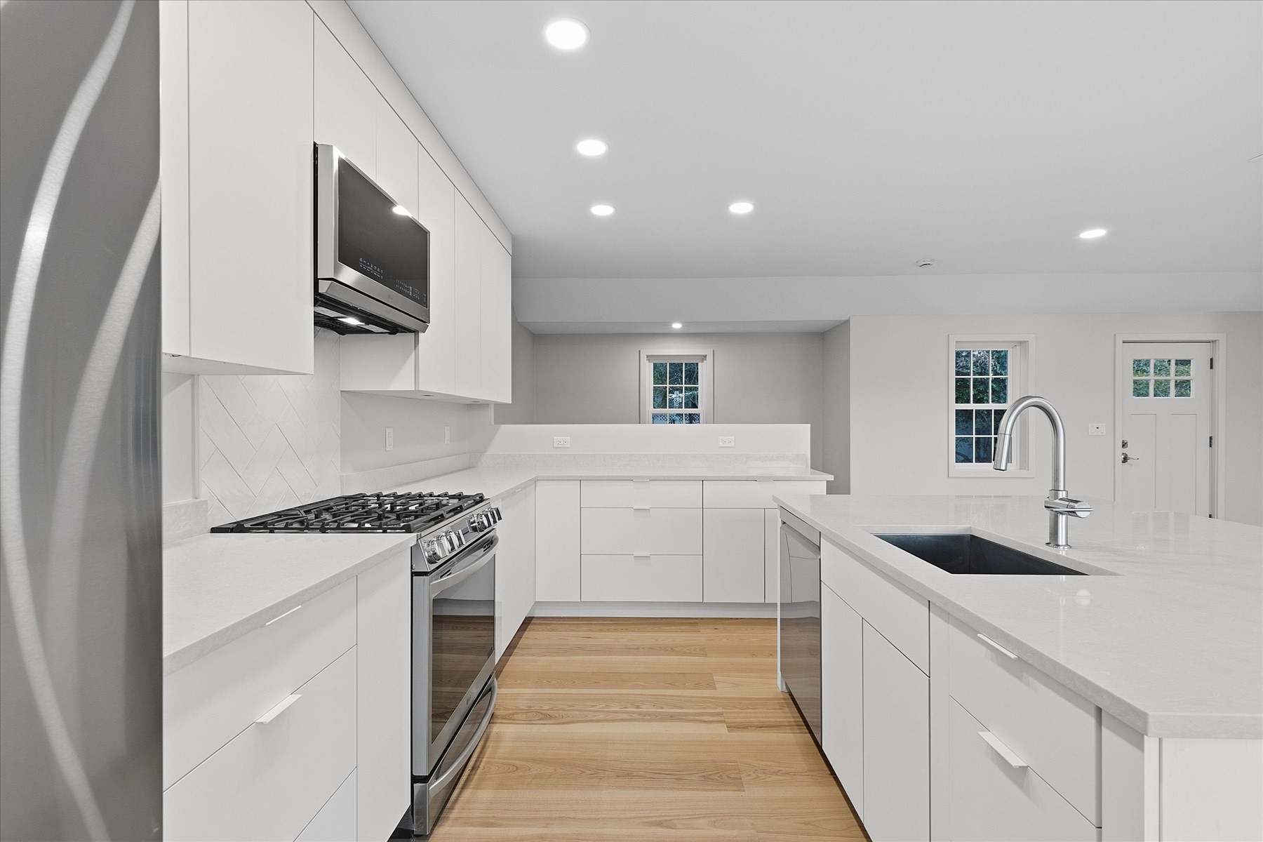 - Deck - Exterior, Flooring - Engineered Hardwood, Gas Stove, Kitchen Island, Open Floor Plan, Slider, Stainless Steel Appliances