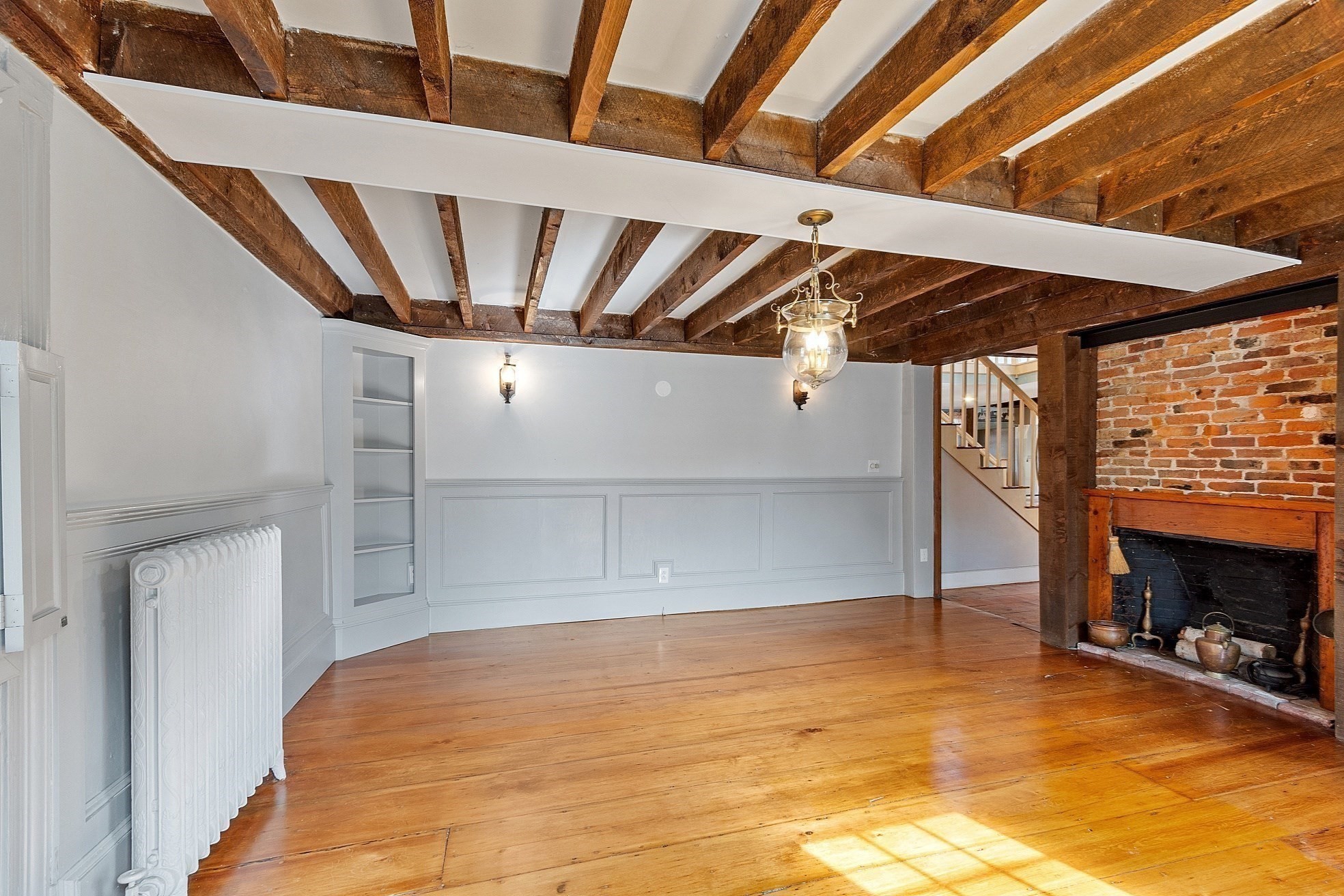 - Dining Room Features: Ceiling - Beamed, Chair Rail, Closet/Cabinets - Custom Built, Fireplace, Flooring - Wood, Lighting - Overhead, Lighting - Sconce, Wainscoting, Window(s) - Bay/Bow/Box