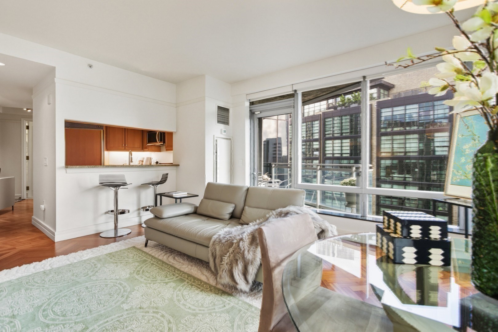 - Living Room Features: Balcony - Exterior, Cable Hookup, Flooring - Hardwood, Open Floor Plan