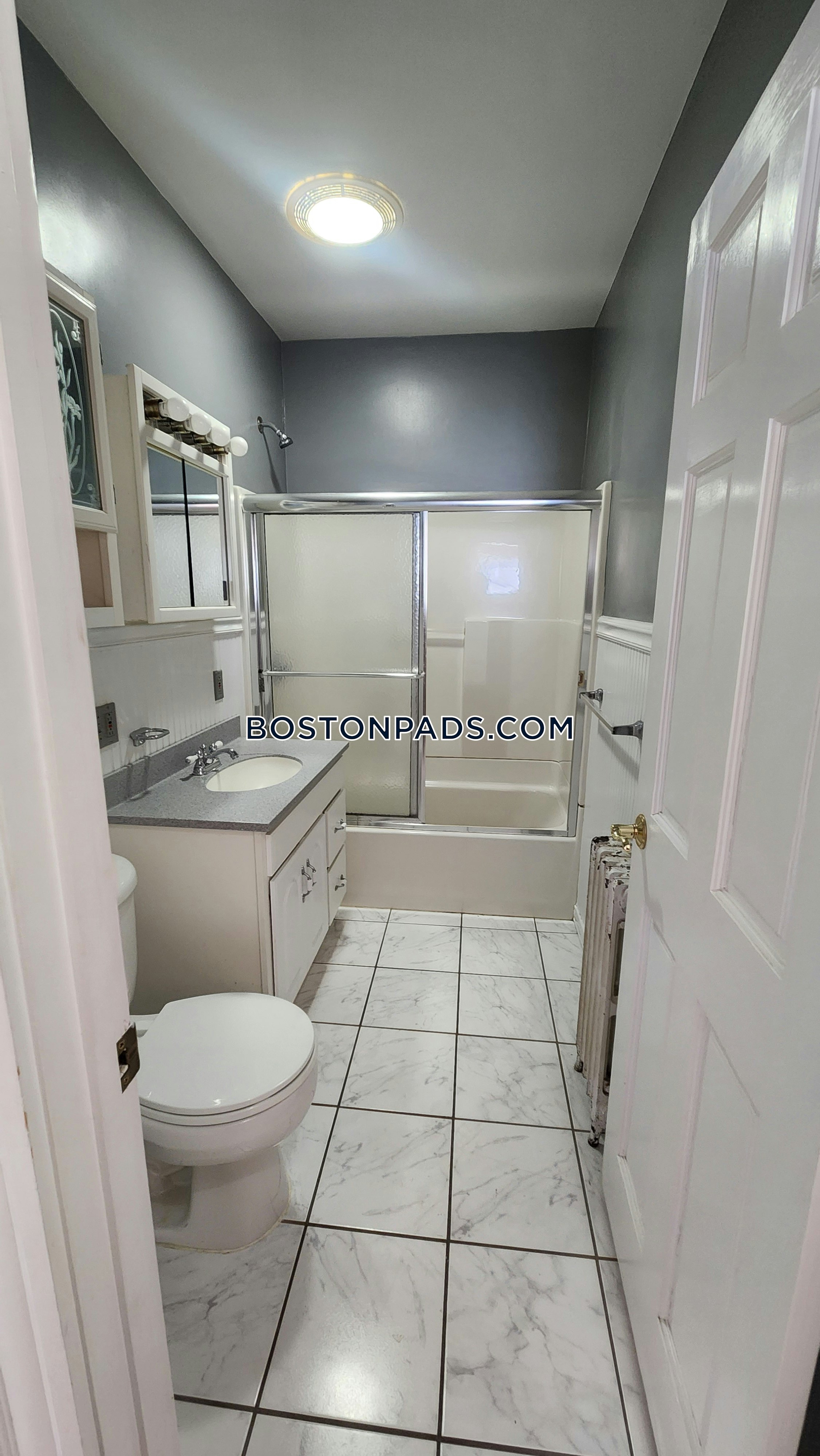 The monthly rent is $3,300 for this 3 bedroom, 1 bathroom apartment in Boston's Brighton - Oak Square neighborhood.