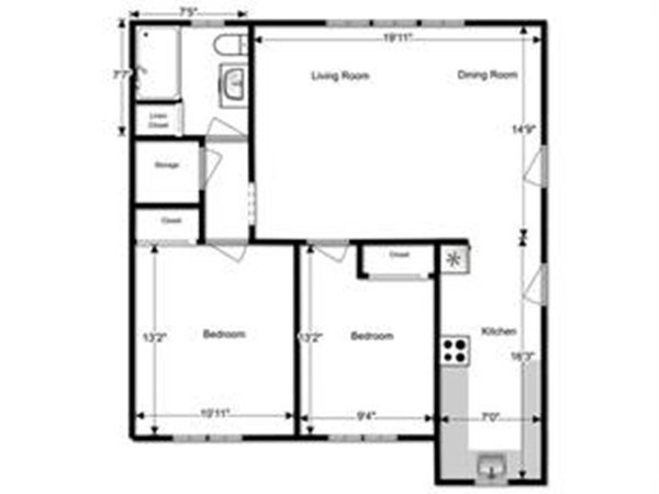 - Living Room Dimensions: 20X14