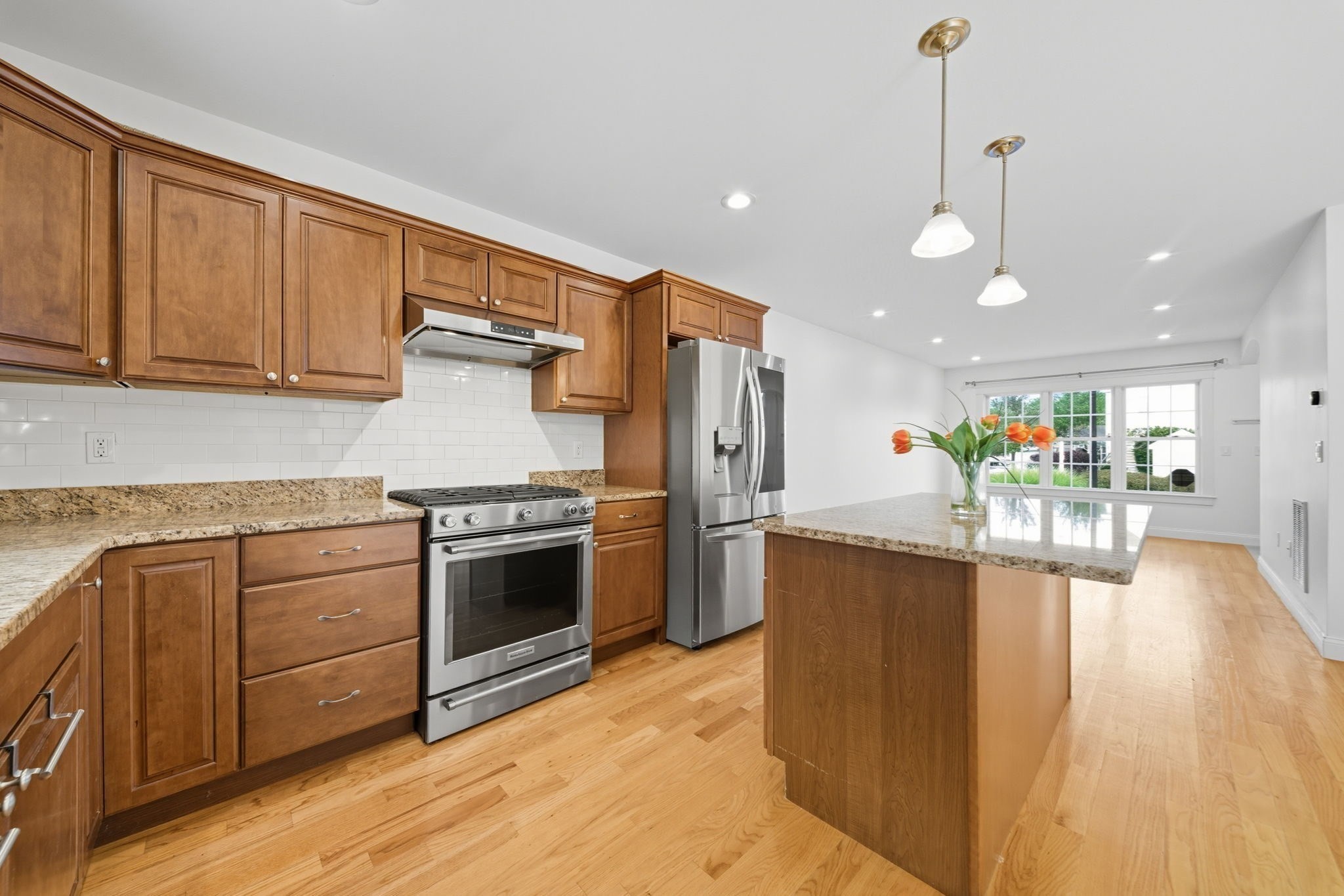 - Countertops - Stone/Granite/Solid, Flooring - Hardwood, Gas Stove, Kitchen Island, Open Floor Plan, Recessed Lighting, Stainless Steel Appliances