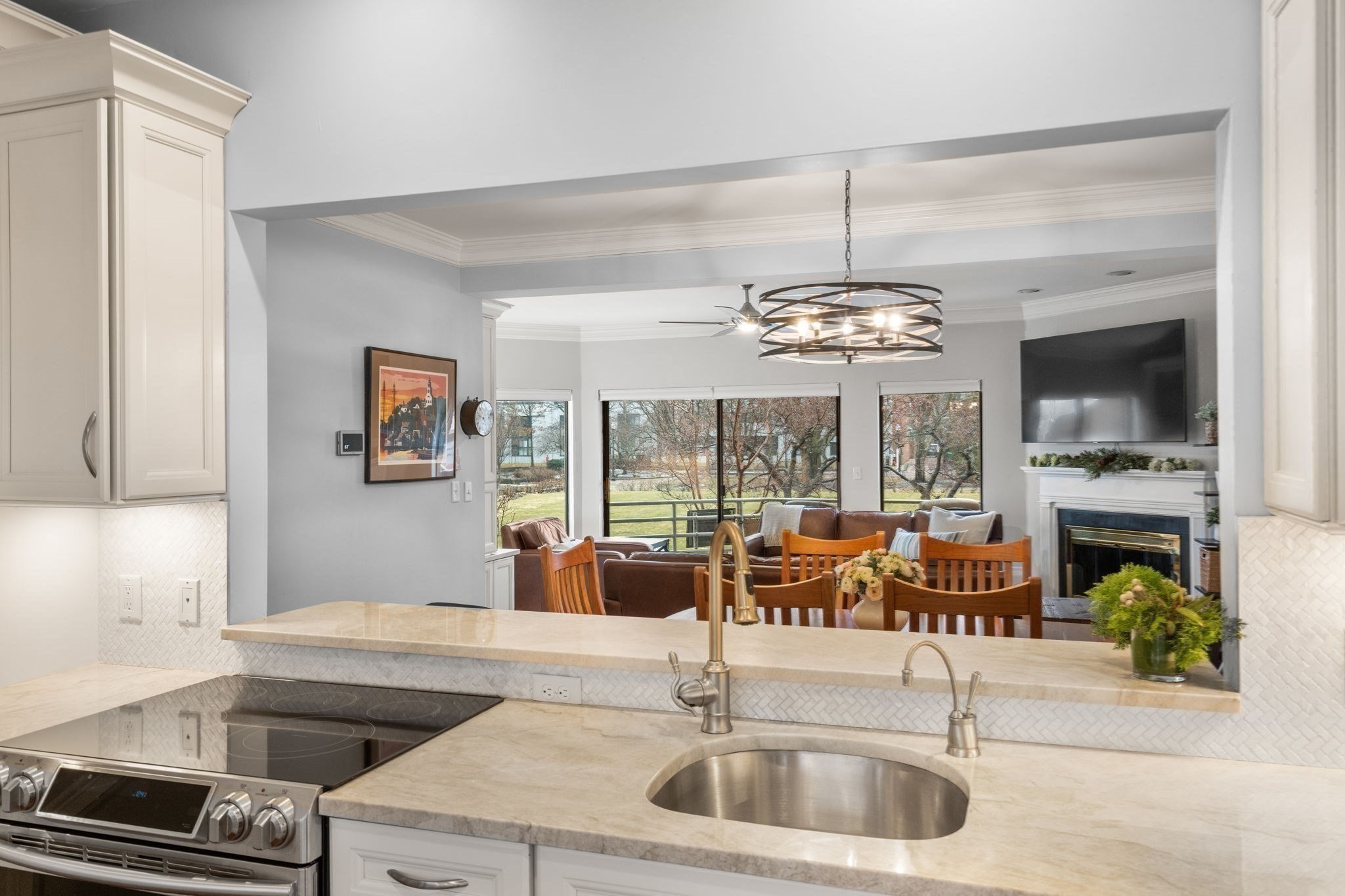 - Living Room Features: Ceiling Fan(s), Crown Molding, Deck - Exterior, Fireplace, Flooring - Hardwood, High Speed Internet Hookup, Open Floor Plan, Slider