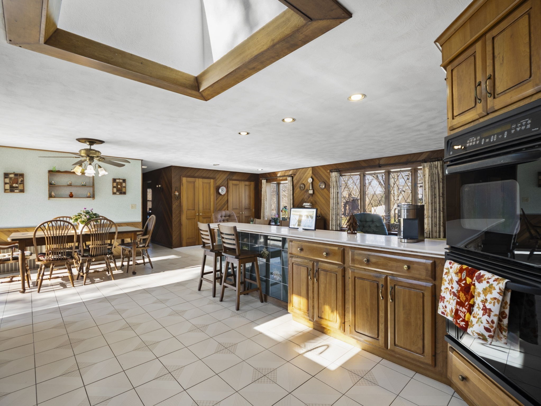 - Countertops - Upgraded, Exterior Access, Flooring - Stone/Ceramic Tile, Kitchen Island, Open Floor Plan, Peninsula, Recessed Lighting, Skylight, Slider