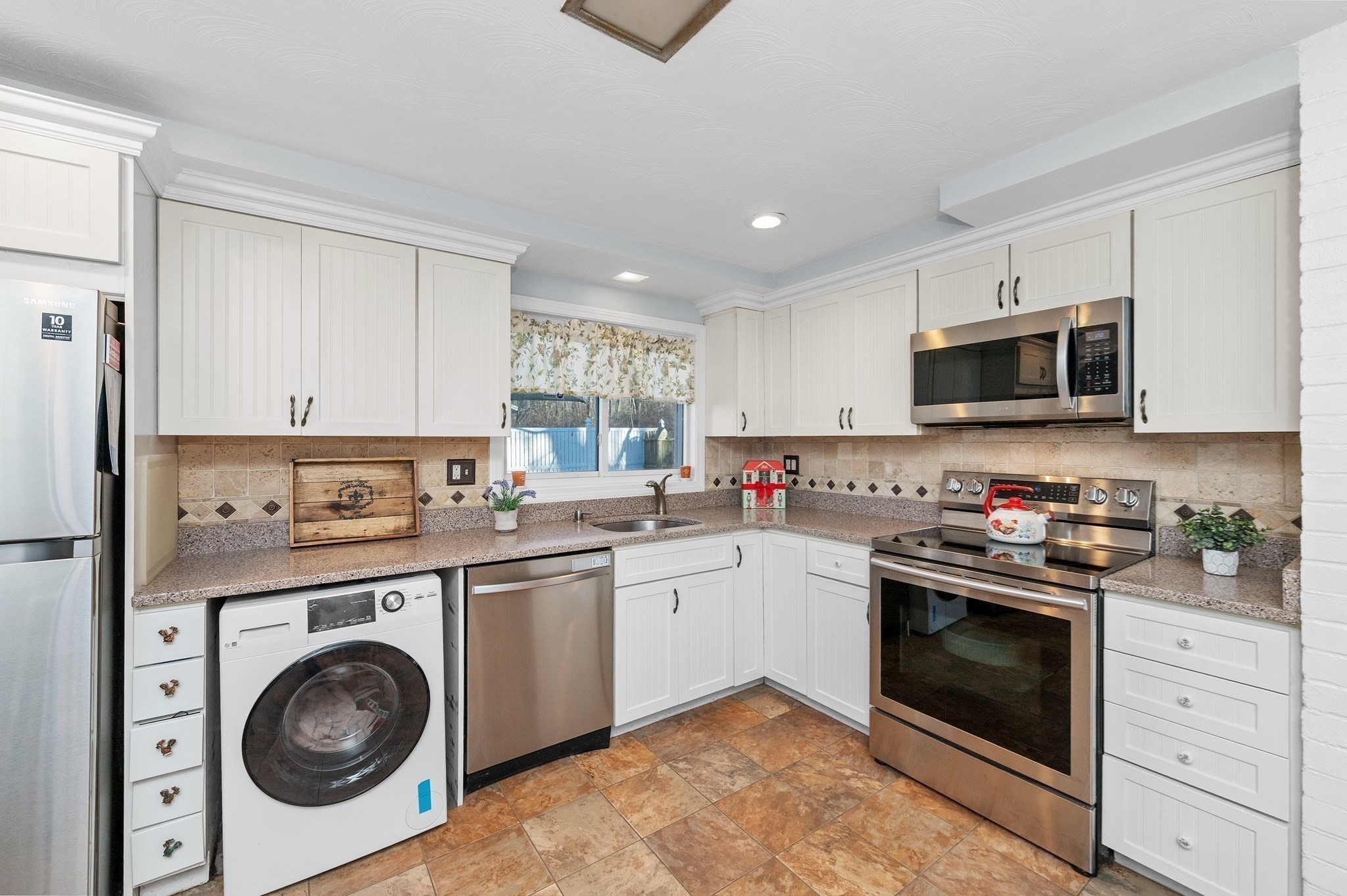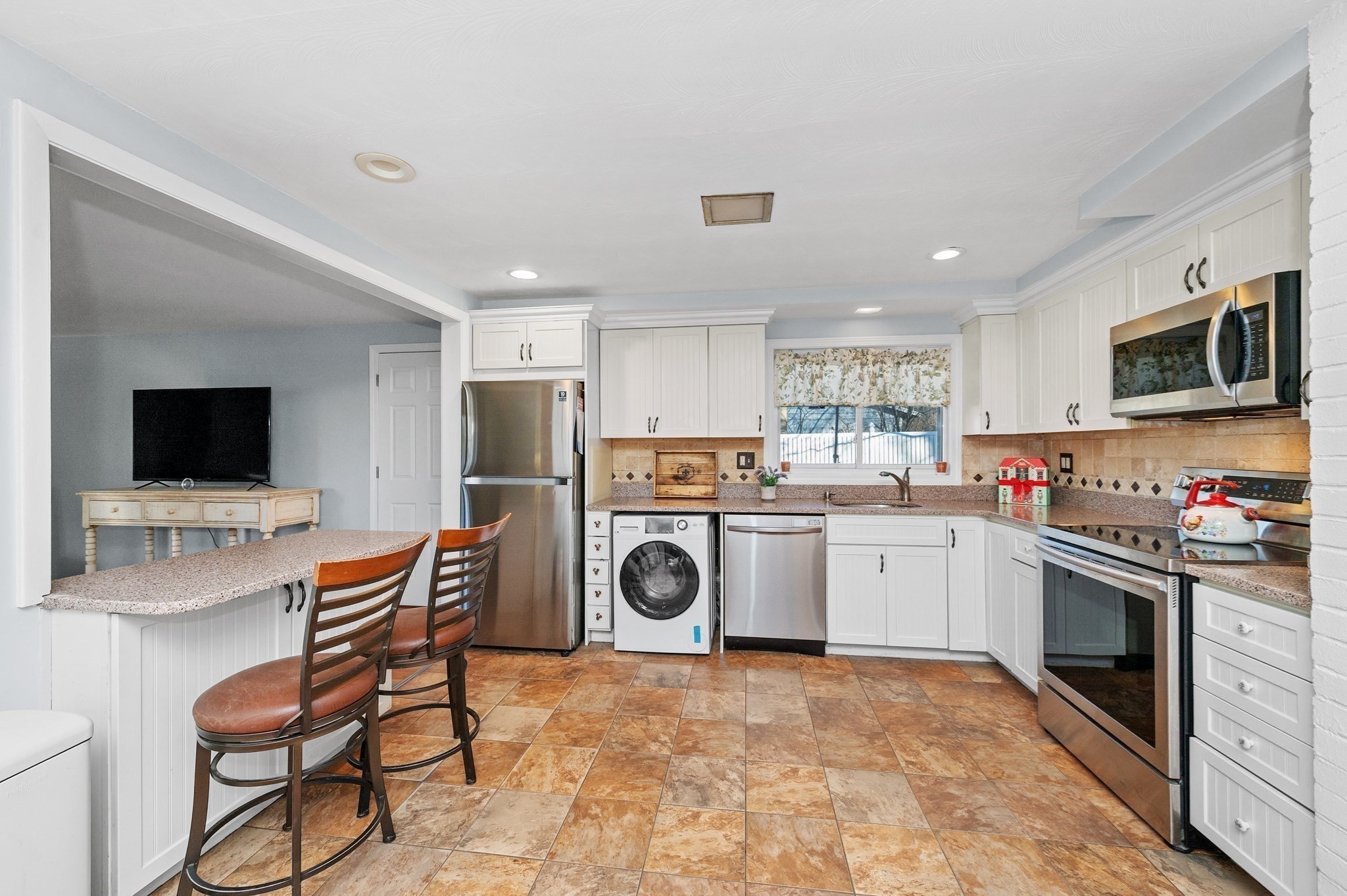 - Breakfast Bar / Nook, Countertops - Stone/Granite/Solid, Dining Area, Exterior Access, Flooring - Stone/Ceramic Tile, Lighting - Overhead, Open Floor Plan, Recessed Lighting, Washer Hookup