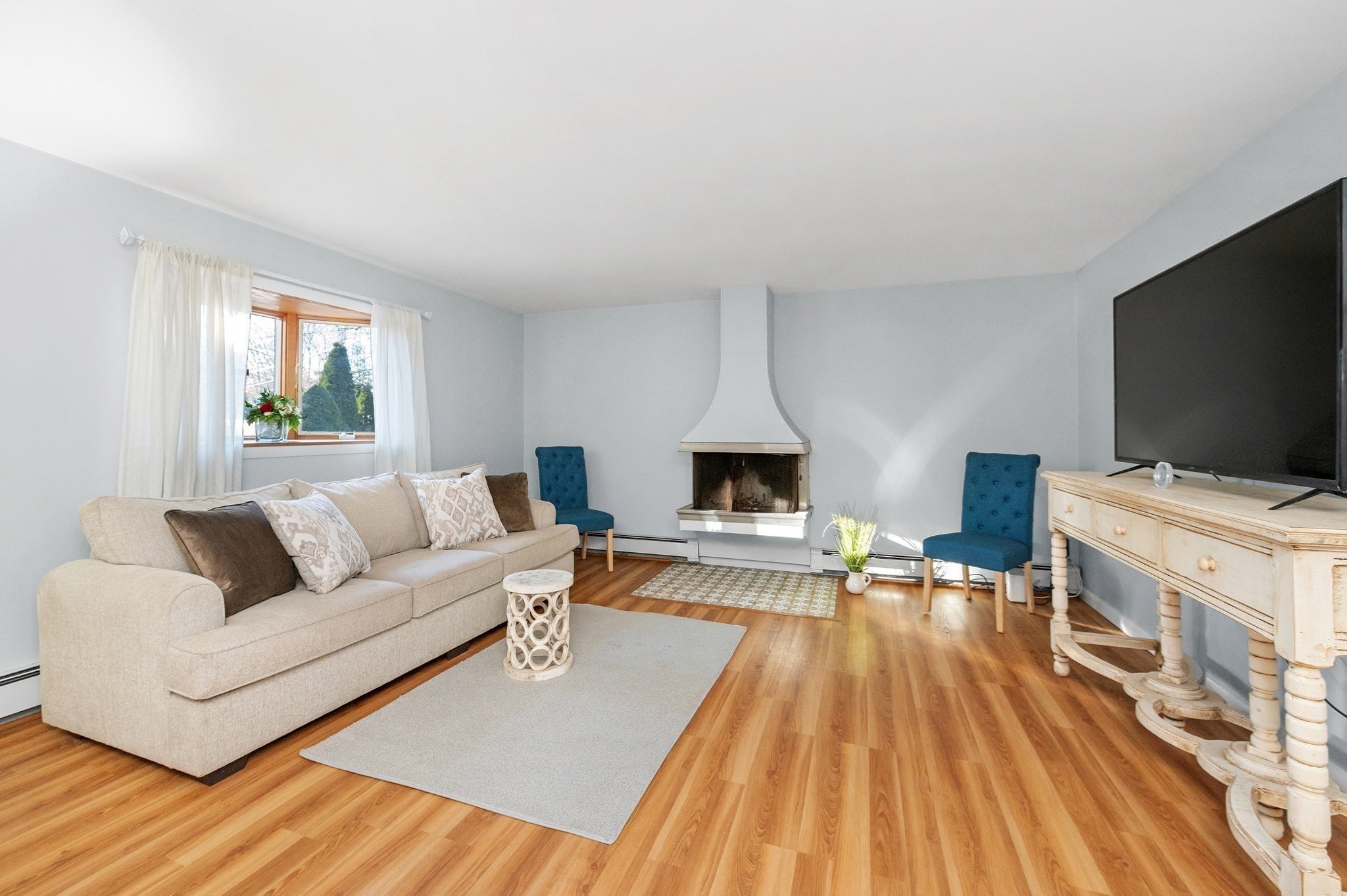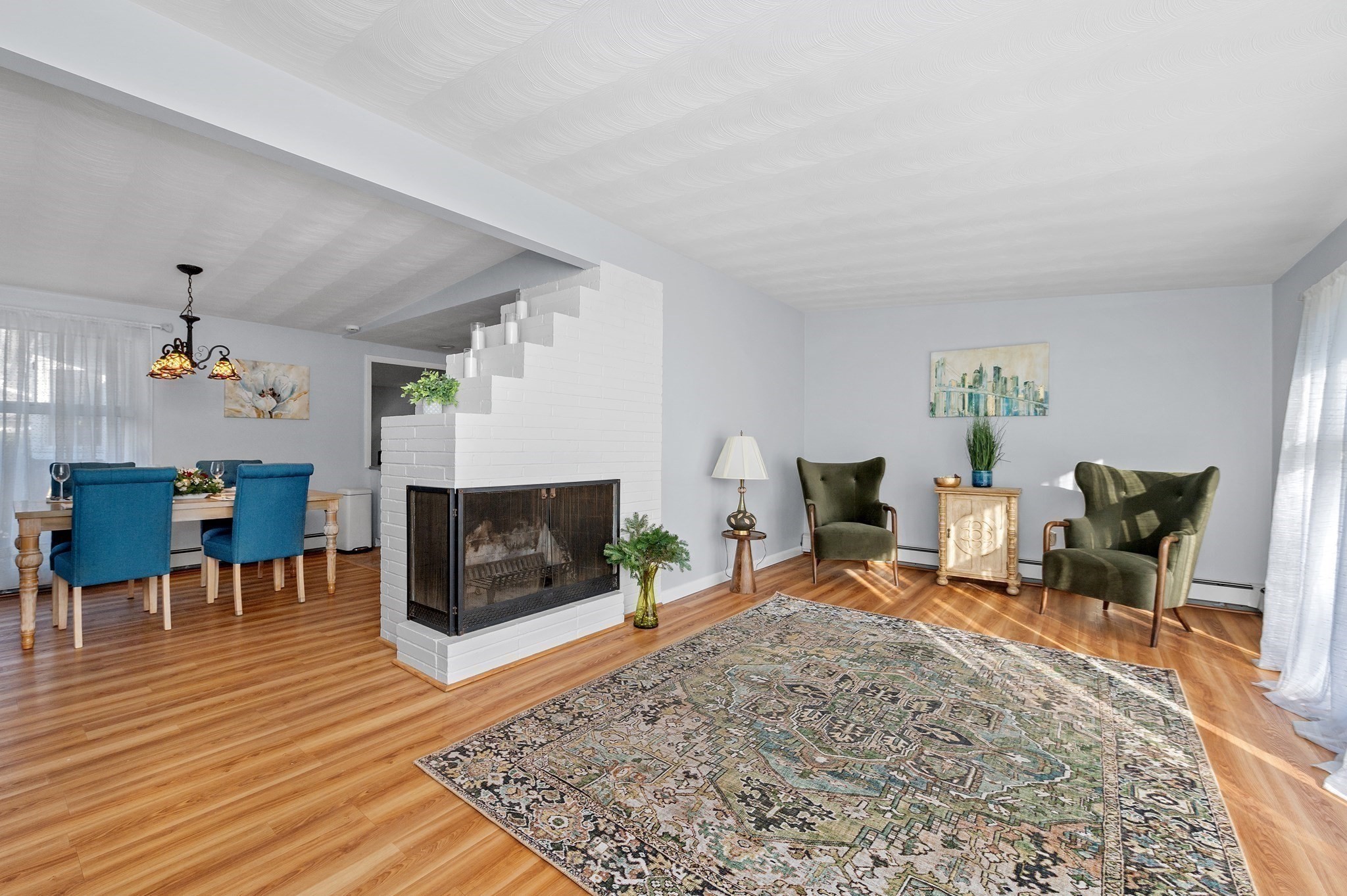- Living Room Features: Fireplace, Open Floor Plan, Window(s) - Picture