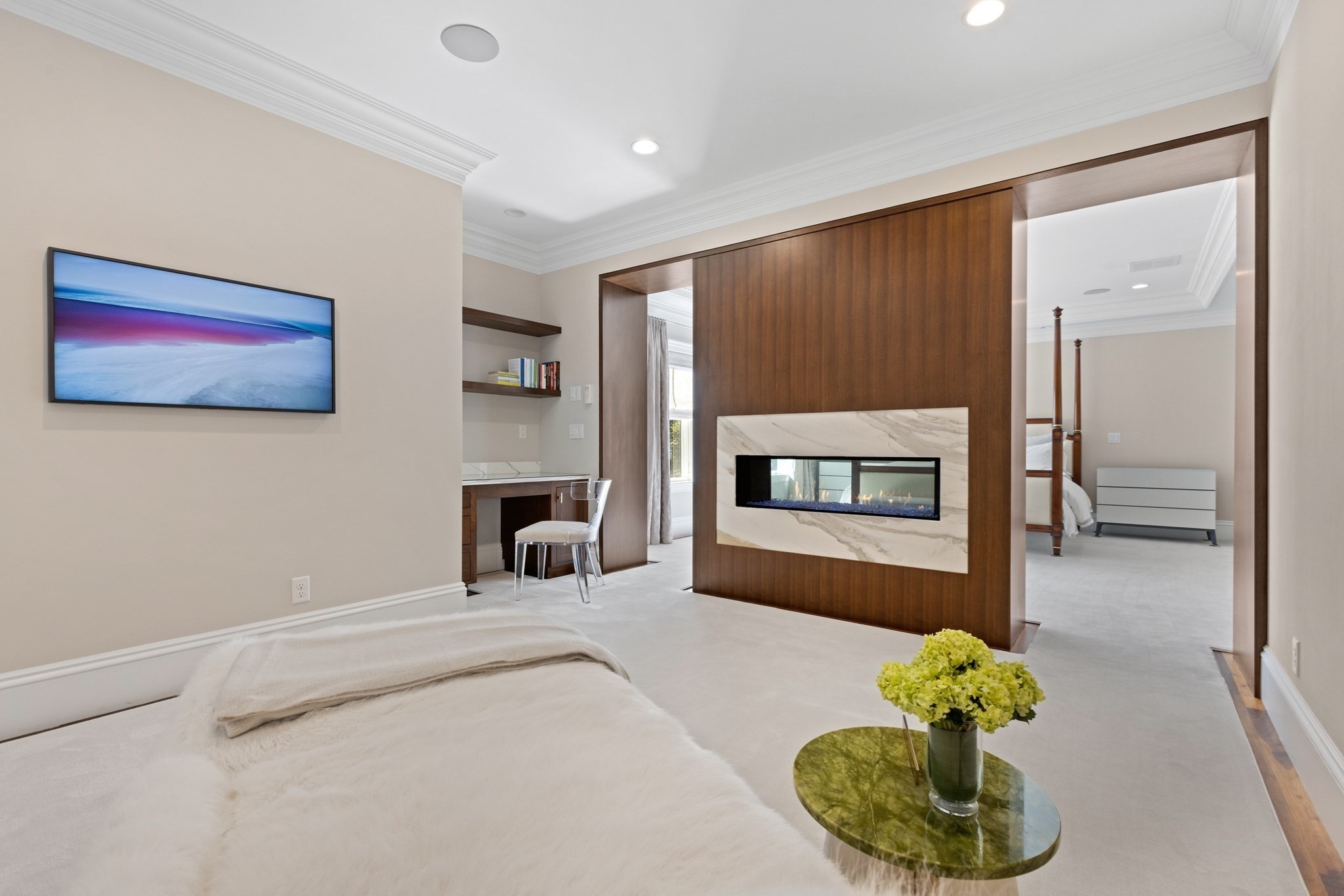 - Master Bedroom Features: Bathroom - Double Vanity/Sink, Bathroom - Full, Closet - Walk-in, Closet/Cabinets - Custom Built, Crown Molding, Decorative Molding, Double Vanity, Dressing Room, Fireplace, Flooring - Hardwood, Recessed Lighting, Wet bar