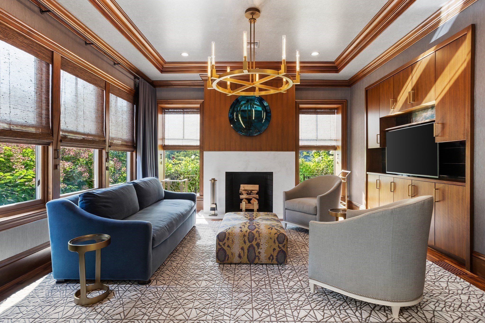 - Living Room Features: Crown Molding, Fireplace, Flooring - Hardwood, Lighting - Pendant, Pocket Door, Recessed Lighting, Window(s) - Bay/Bow/Box