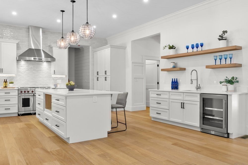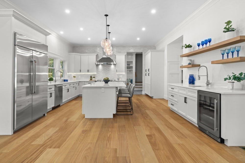 - Closet/Cabinets - Custom Built, Countertops - Stone/Granite/Solid, Flooring - Hardwood, Kitchen Island, Lighting - Pendant, Recessed Lighting, Second Dishwasher, Stainless Steel Appliances, Wet bar, Wine Chiller