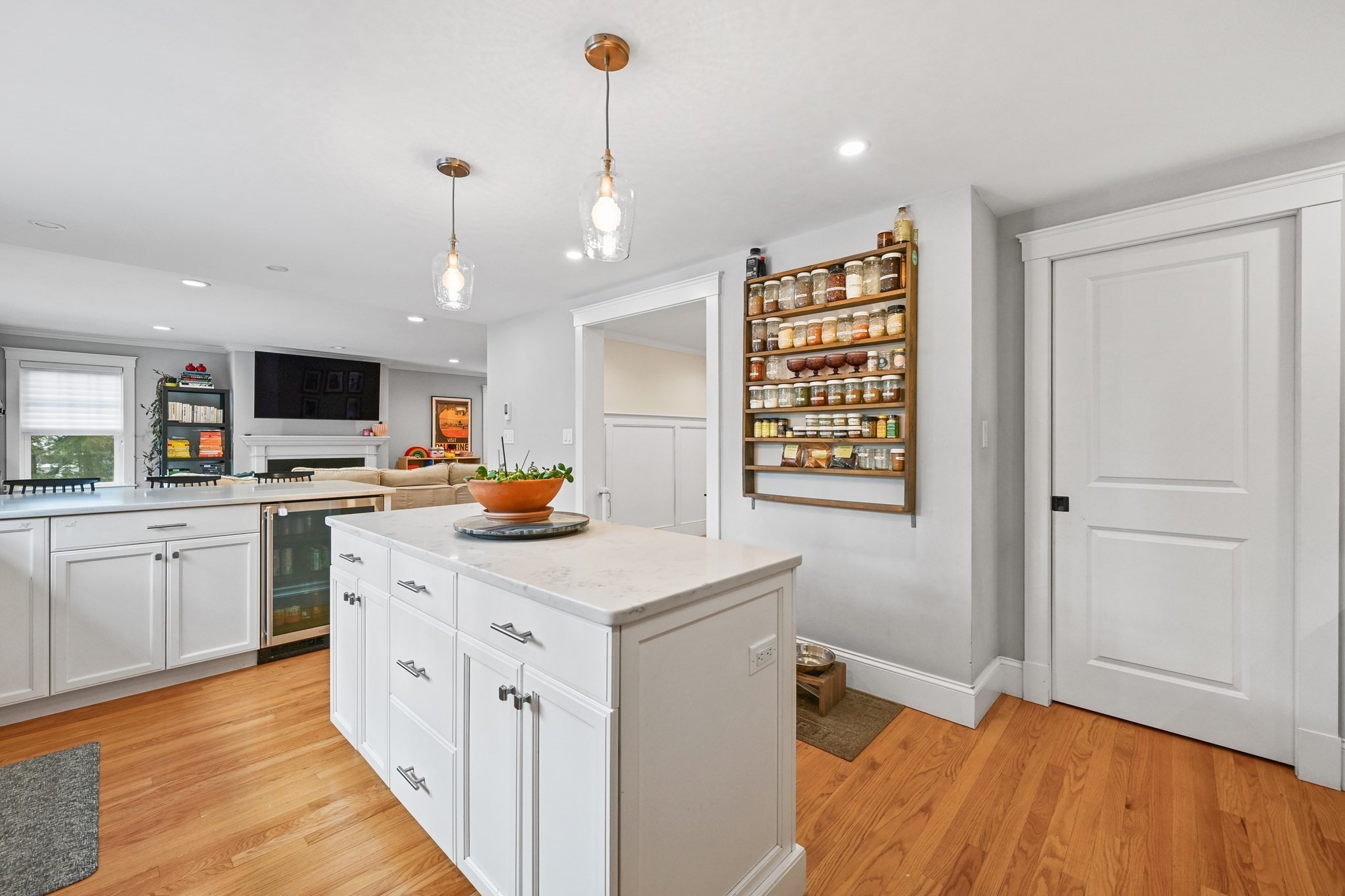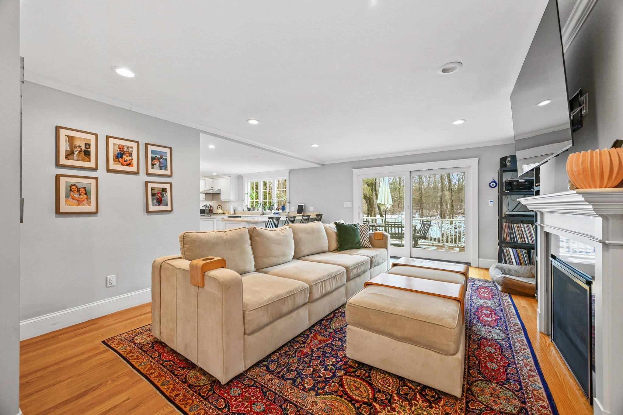 - Living Room Features: Crown Molding, Fireplace, Flooring - Hardwood, Recessed Lighting, Remodeled