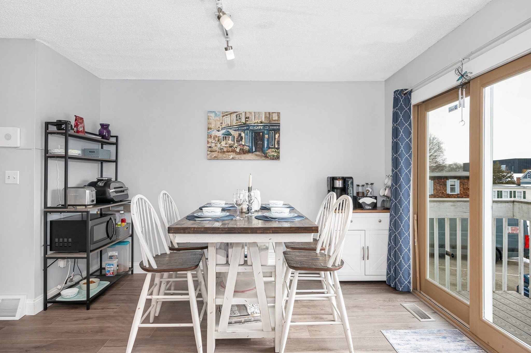 - Balcony - Exterior, Countertops - Stone/Granite/Solid, Dining Area, Exterior Access, Flooring - Laminate, Gas Stove, Lighting - Overhead, Slider, Stainless Steel Appliances