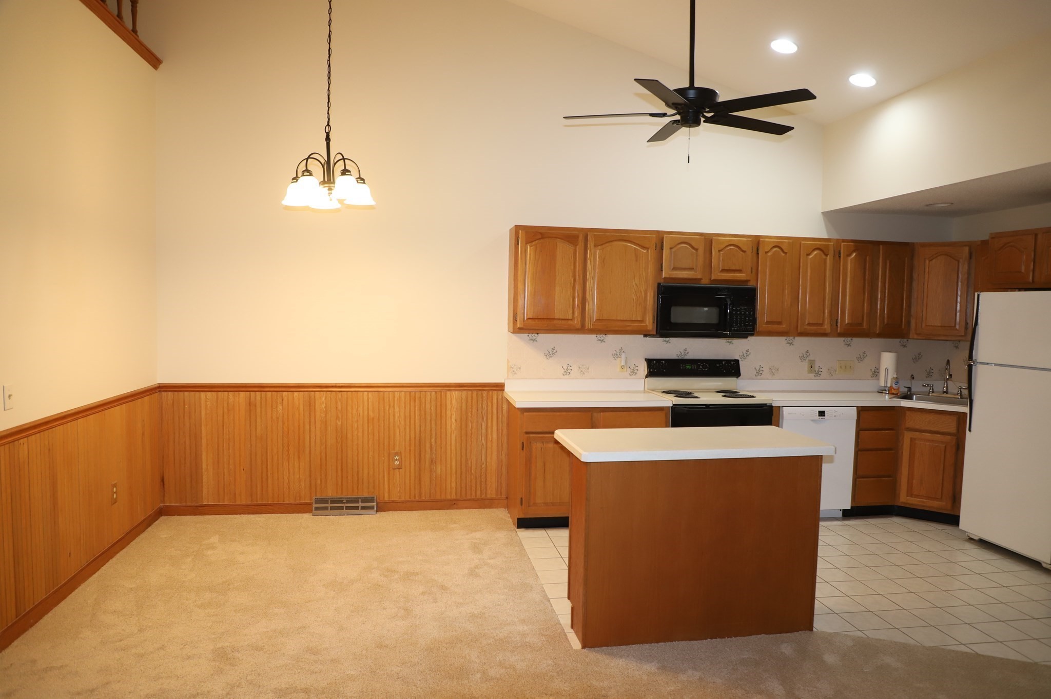 - Ceiling Fan(s), Chair Rail, Dining Area, Flooring - Stone/Ceramic Tile, Kitchen Island, Recessed Lighting