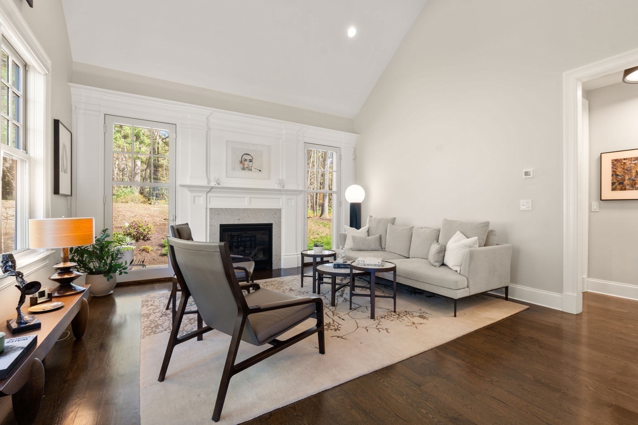 - Family Room Features: Ceiling - Cathedral, Fireplace, Flooring - Wood