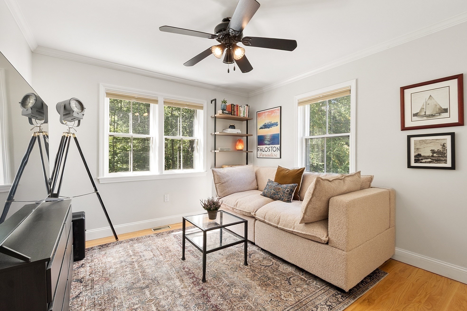 - Living Room Features: Ceiling Fan(s), Crown Molding, Fireplace, Flooring - Hardwood, Recessed Lighting