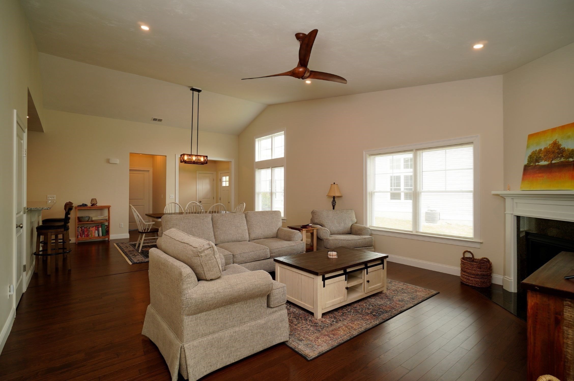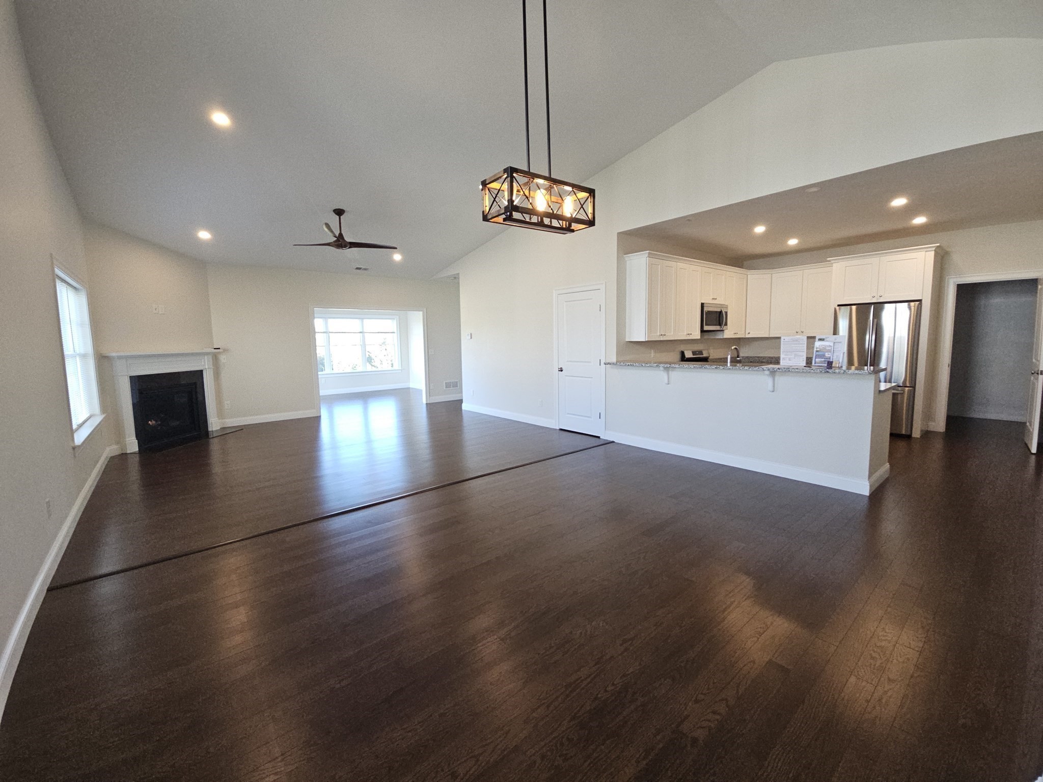 - Living Room Features: Ceiling - Cathedral, Ceiling Fan(s), Fireplace, Flooring - Engineered Hardwood, Open Floor Plan, Recessed Lighting
