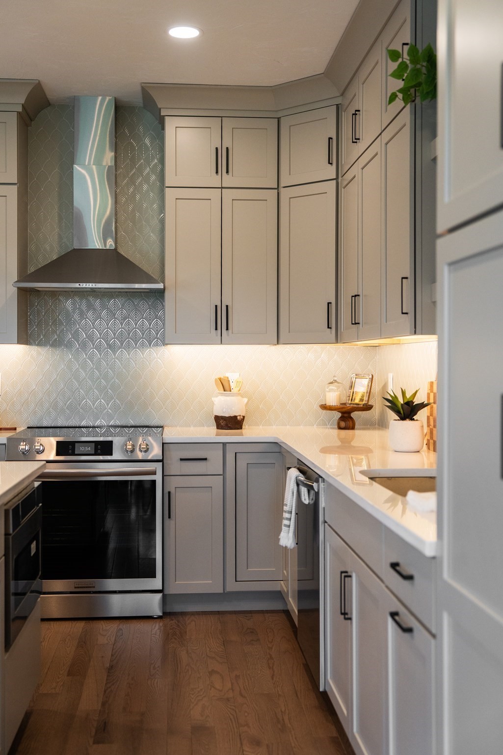 - Dishwasher, Microwave, Range, Vent Hood