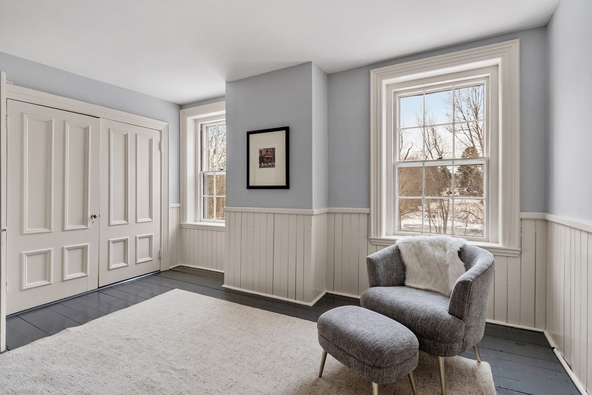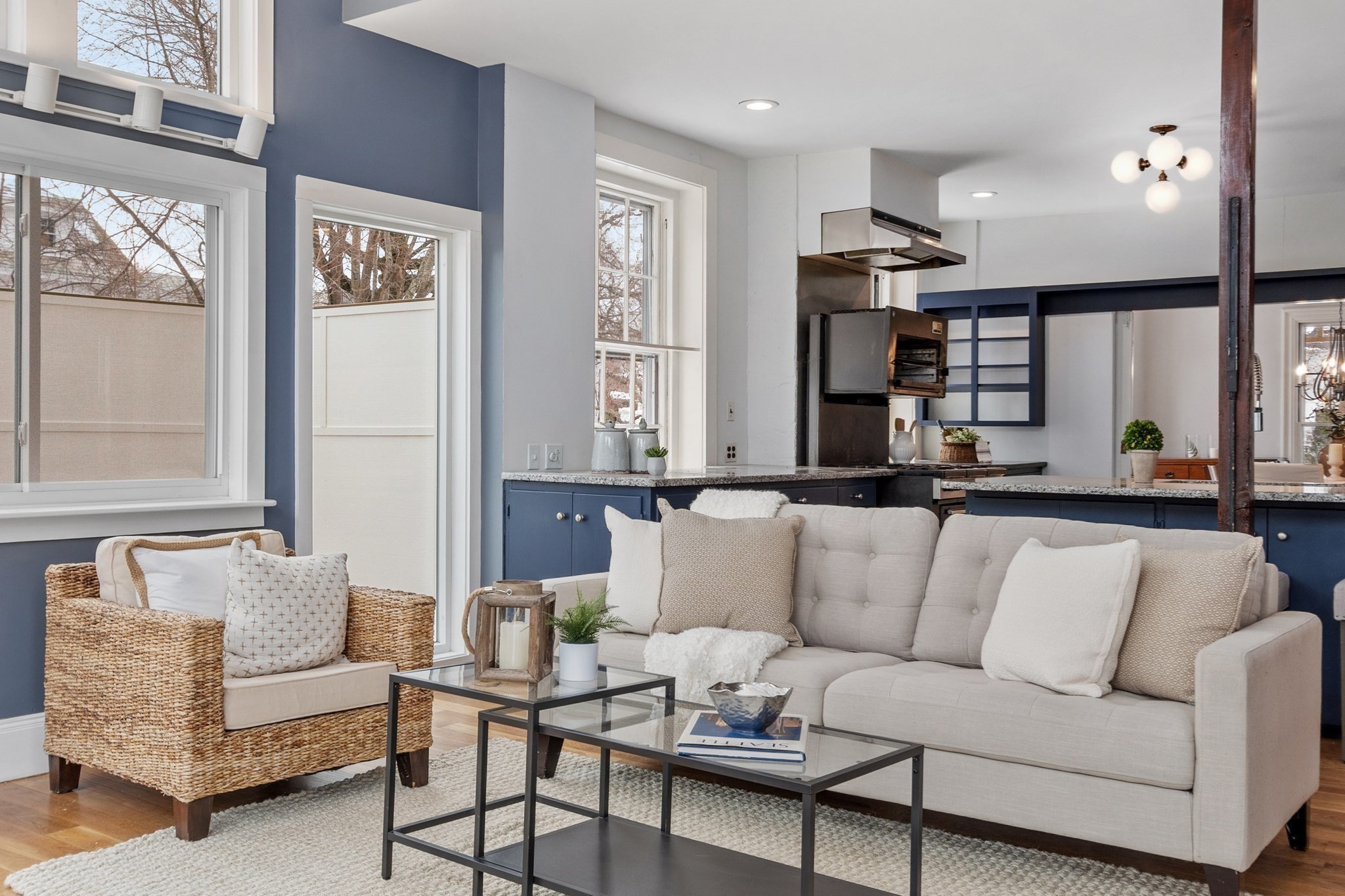 - Living Room Features: Fireplace, Flooring - Wood, French Doors