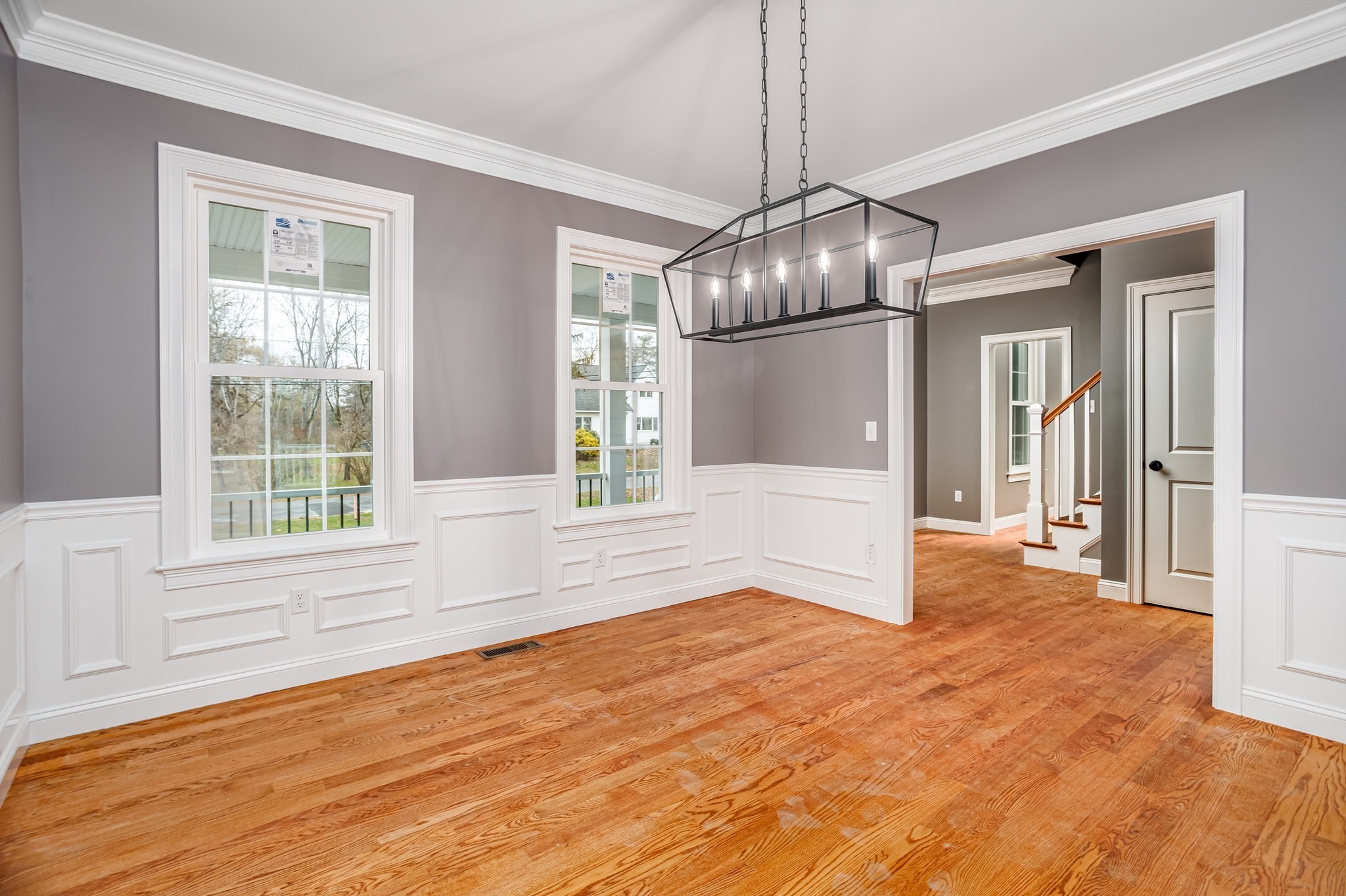 - Dining Room Features: Crown Molding, Flooring - Hardwood, Open Floor Plan, Wainscoting