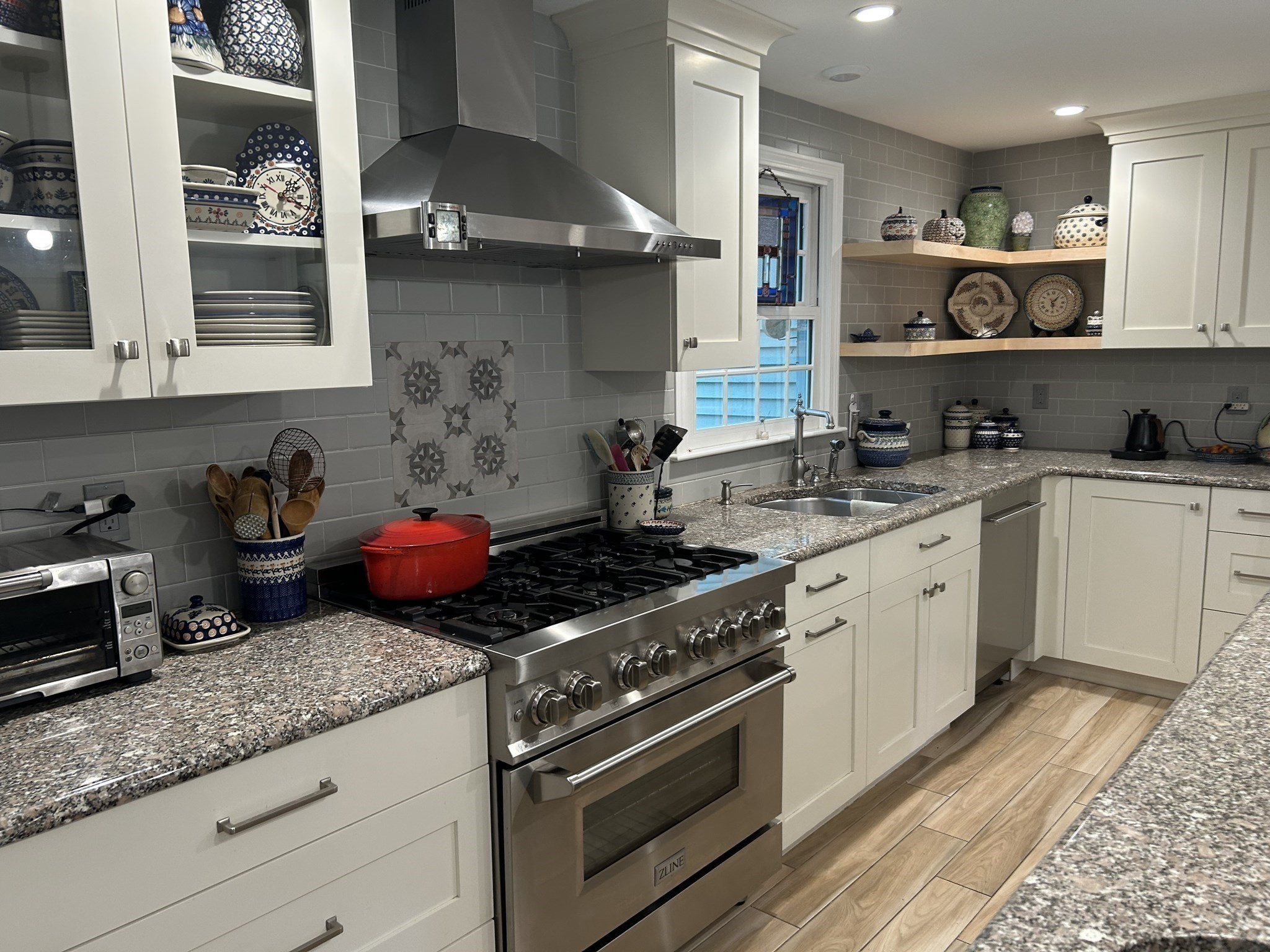 - Breezeway, Cabinets - Upgraded, Closet - Double, Closet/Cabinets - Custom Built, Countertops - Stone/Granite/Solid, Countertops - Upgraded, Dryer Hookup - Electric, Dryer Hookup - Gas, Exterior Access, Gas Stove, Kitchen Island, Lighting - Pendant, Open Floor Plan, Pantry, Recessed Lighting, Remodeled, Stainless Steel Appliances, Window Seat