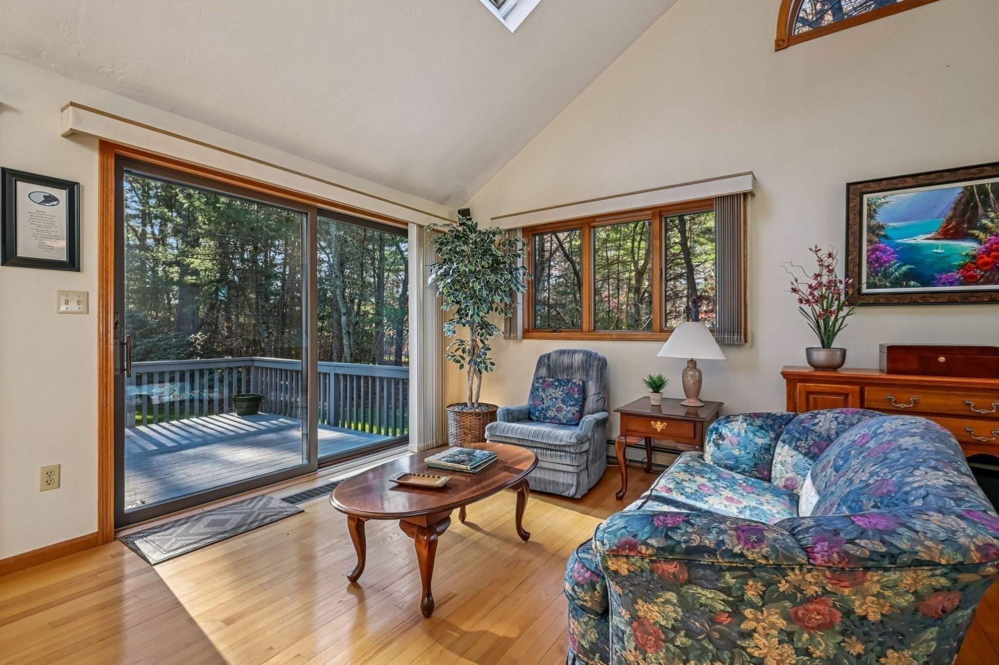 - Living Room Features: Ceiling - Cathedral, Ceiling Fan(s), Fireplace, Flooring - Wall to Wall Carpet, Recessed Lighting, Skylight, Slider