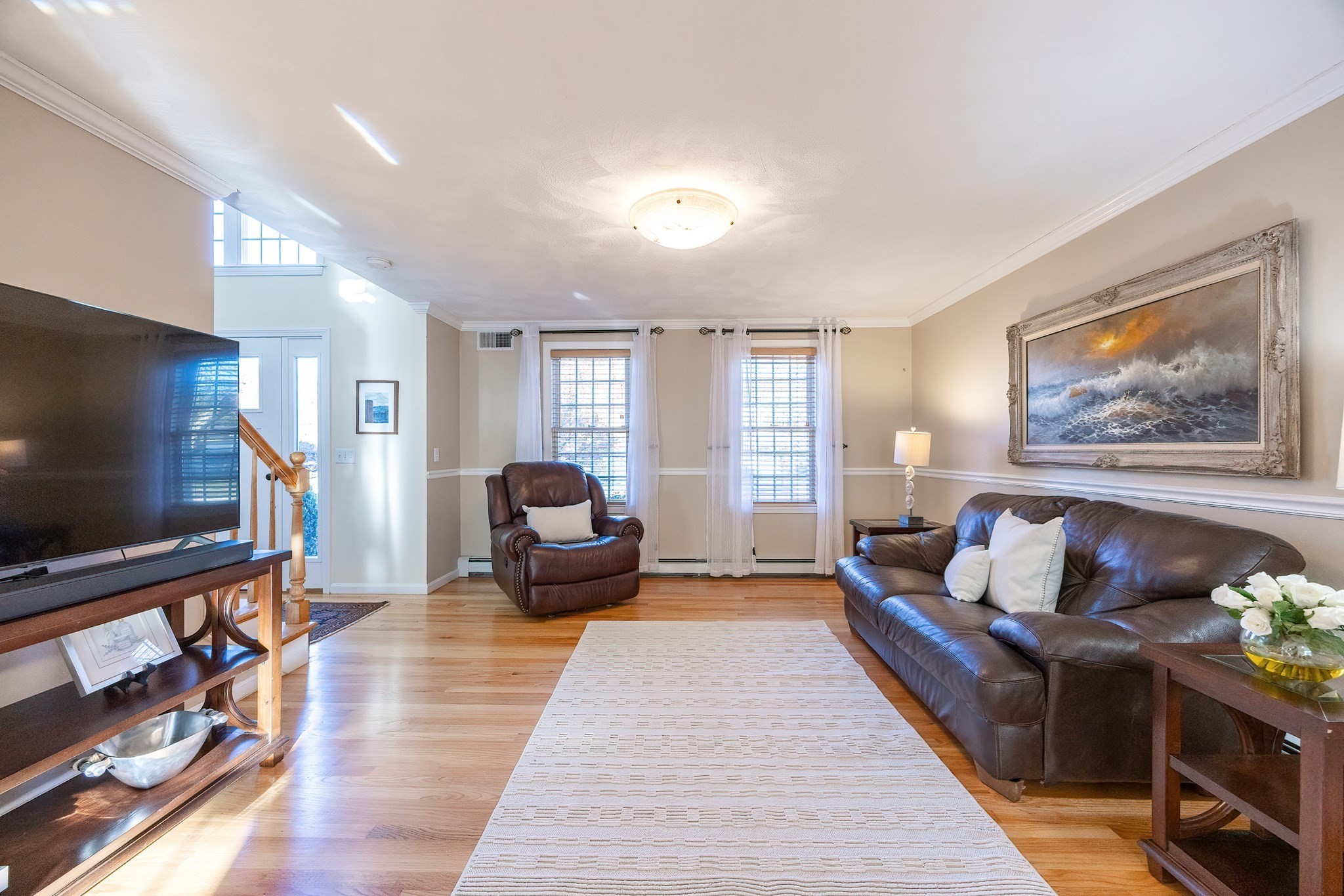 - Living Room Features: Chair Rail, Crown Molding, Fireplace, Flooring - Hardwood