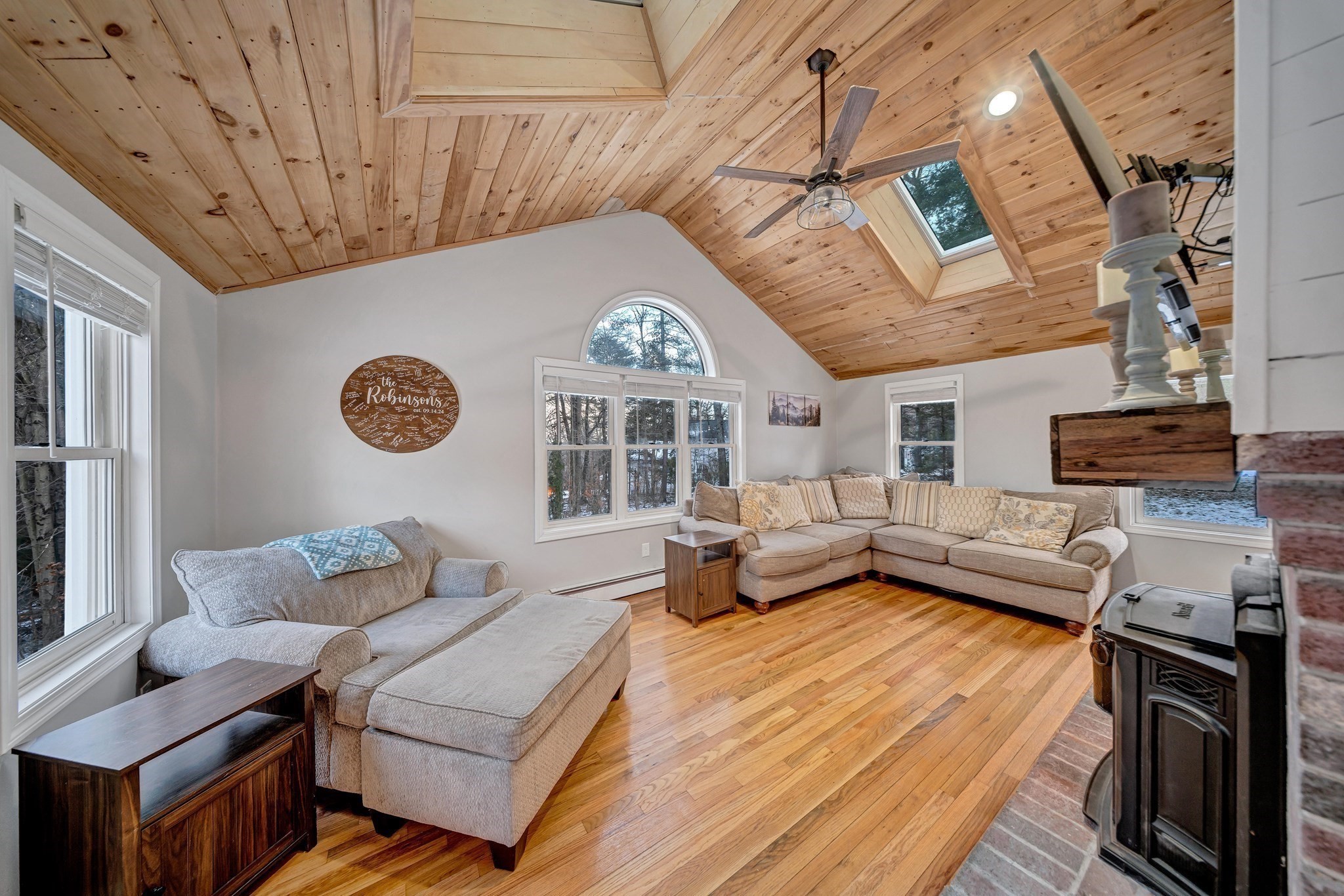 - Living Room Features: Ceiling - Vaulted, Ceiling Fan(s), Fireplace, Flooring - Vinyl, Skylight, Window(s) - Picture