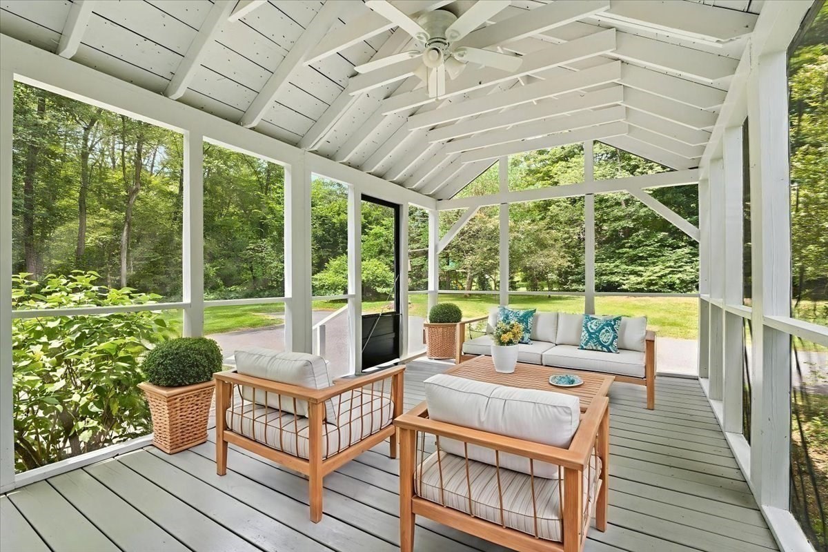 - Exterior Features: Deck - Wood, Decorative Lighting, Porch - Screened, Screens, Stone Wall, Storage Shed