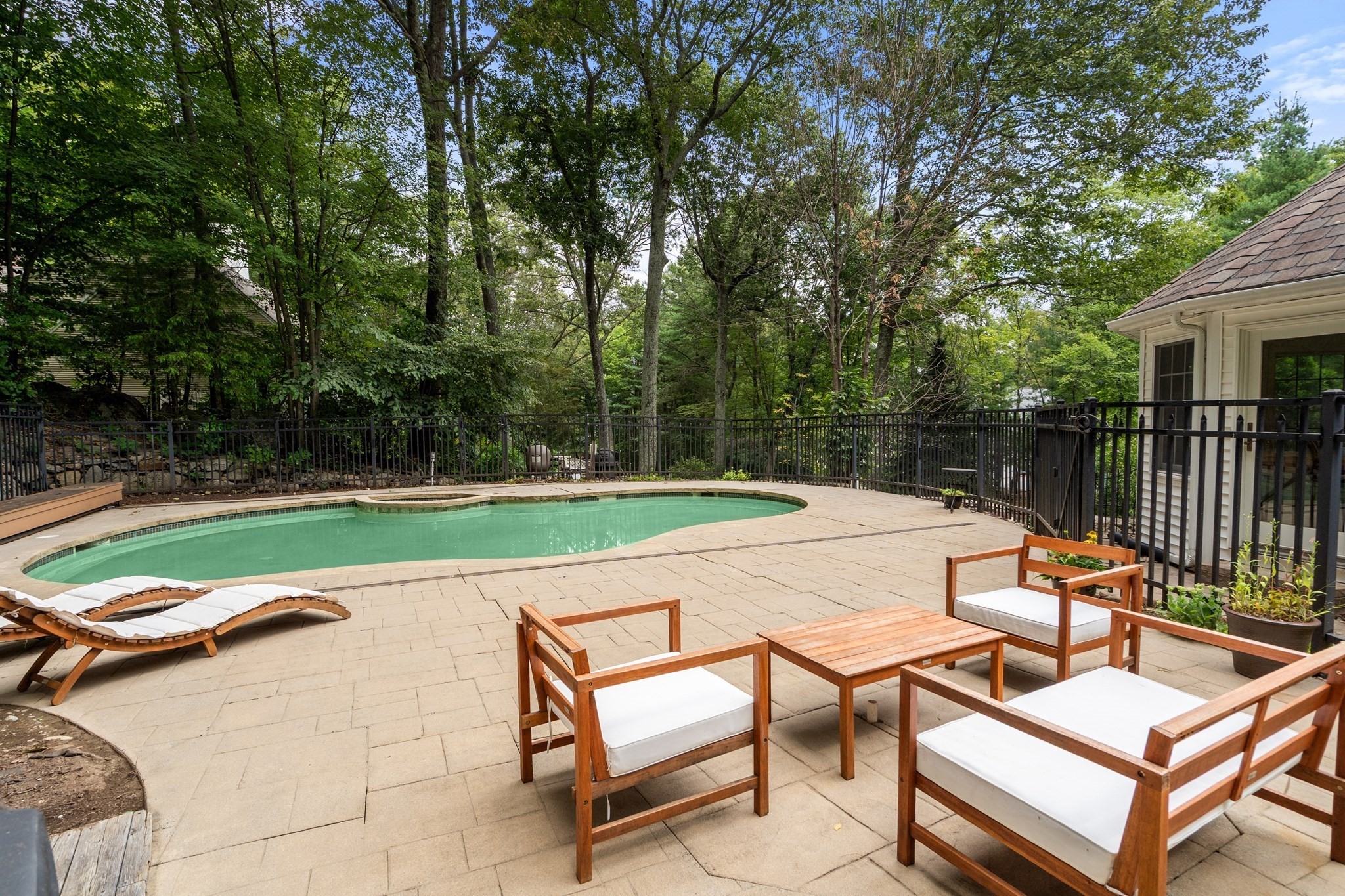 - Exterior Features: Decorative Lighting, Gutters, Patio, Pool - Inground Heated, Stone Wall, Storage Shed