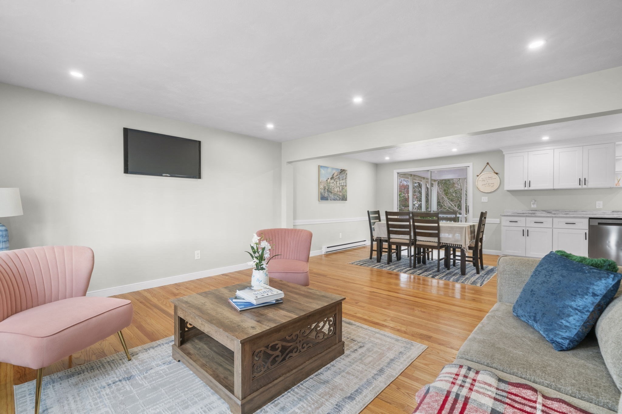 - Dining Room Features: Deck - Exterior, Flooring - Hardwood, Open Floor Plan, Recessed Lighting, Remodeled, Slider