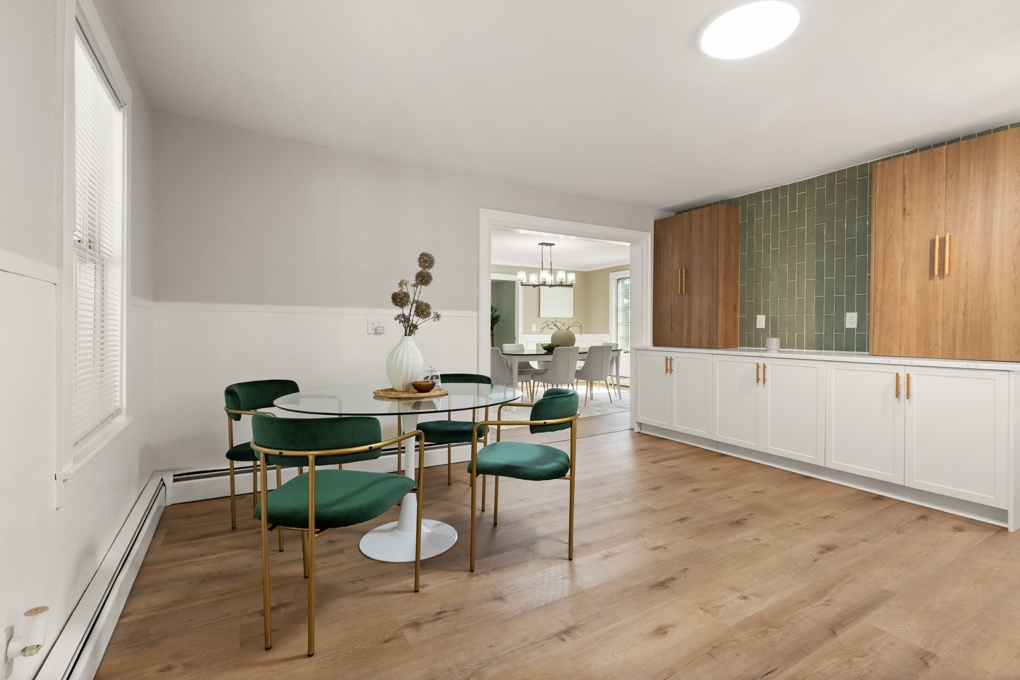 - Dining Room Features: Crown Molding, Flooring - Laminate, Wainscoting