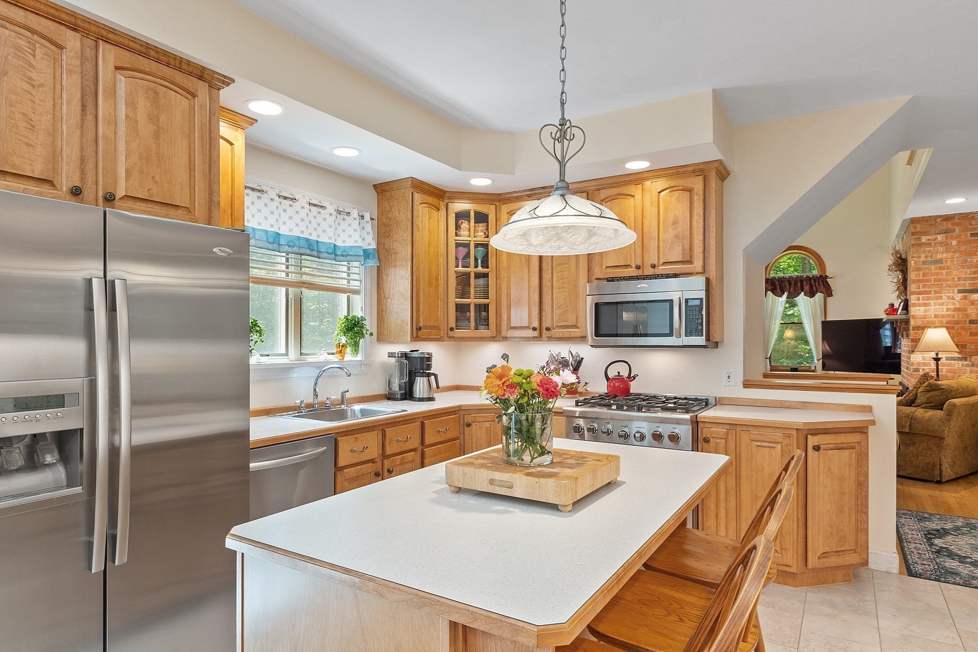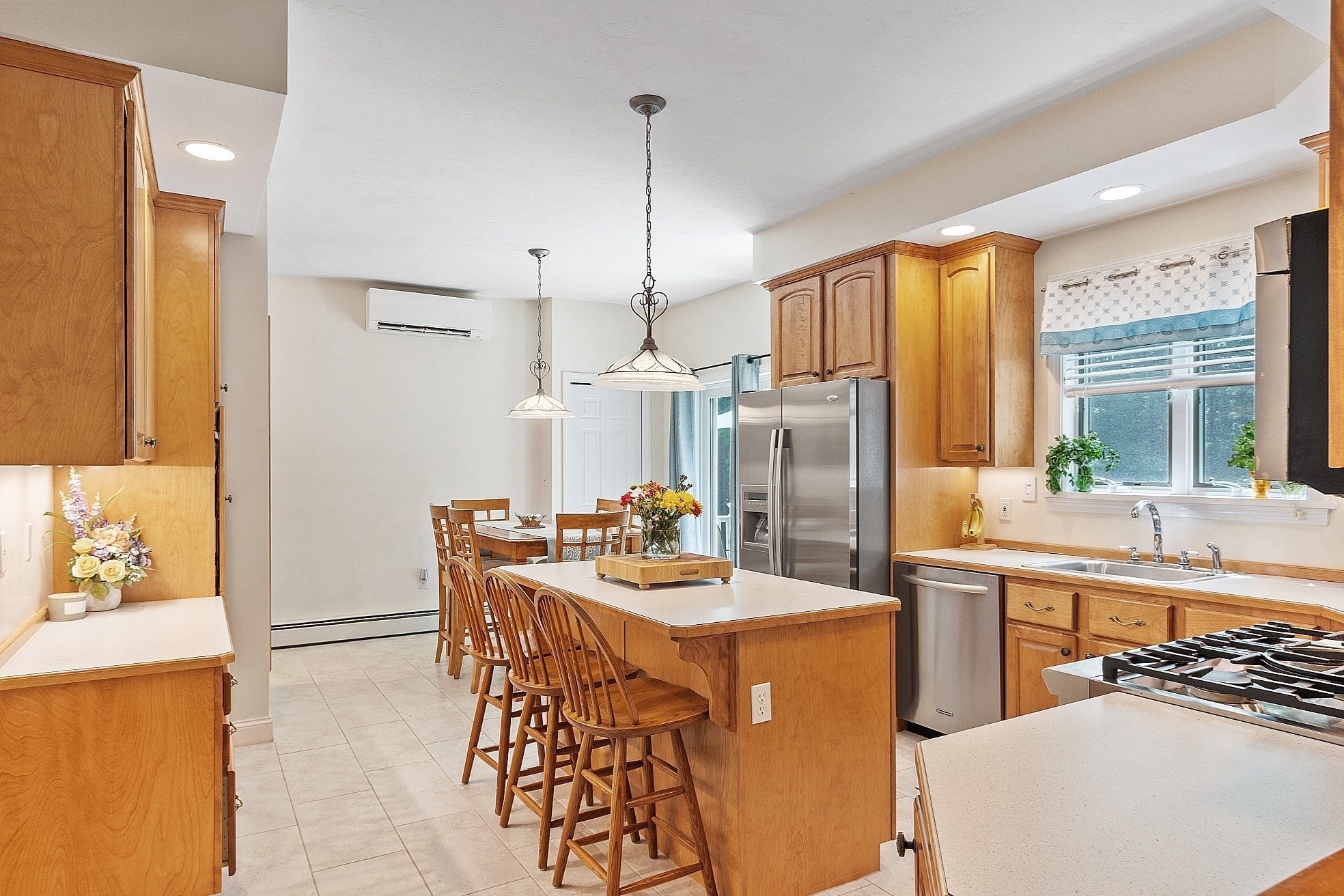 - Breakfast Bar / Nook, Deck - Exterior, Dining Area, Flooring - Stone/Ceramic Tile, Gas Stove, Kitchen Island, Slider, Stainless Steel Appliances