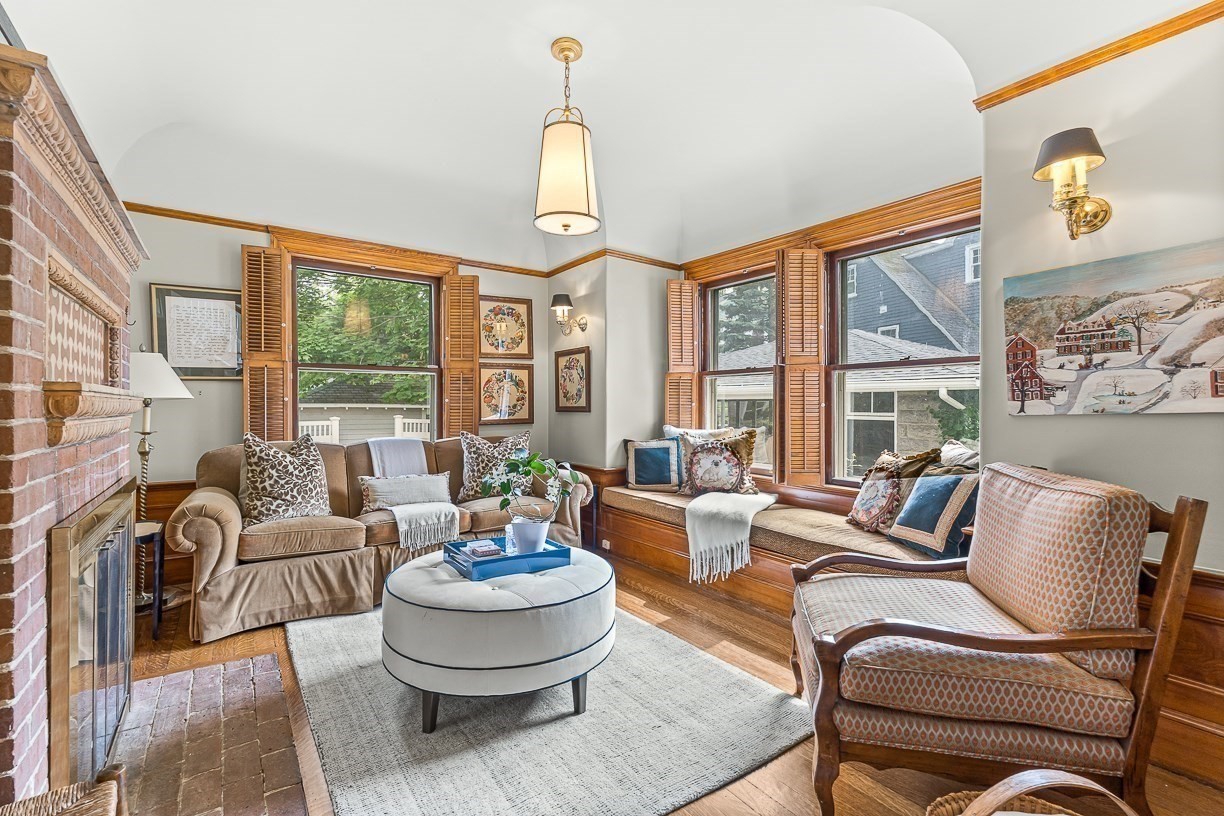- Living Room Features: Crown Molding, Fireplace, Flooring - Hardwood, Lighting - Overhead, Recessed Lighting