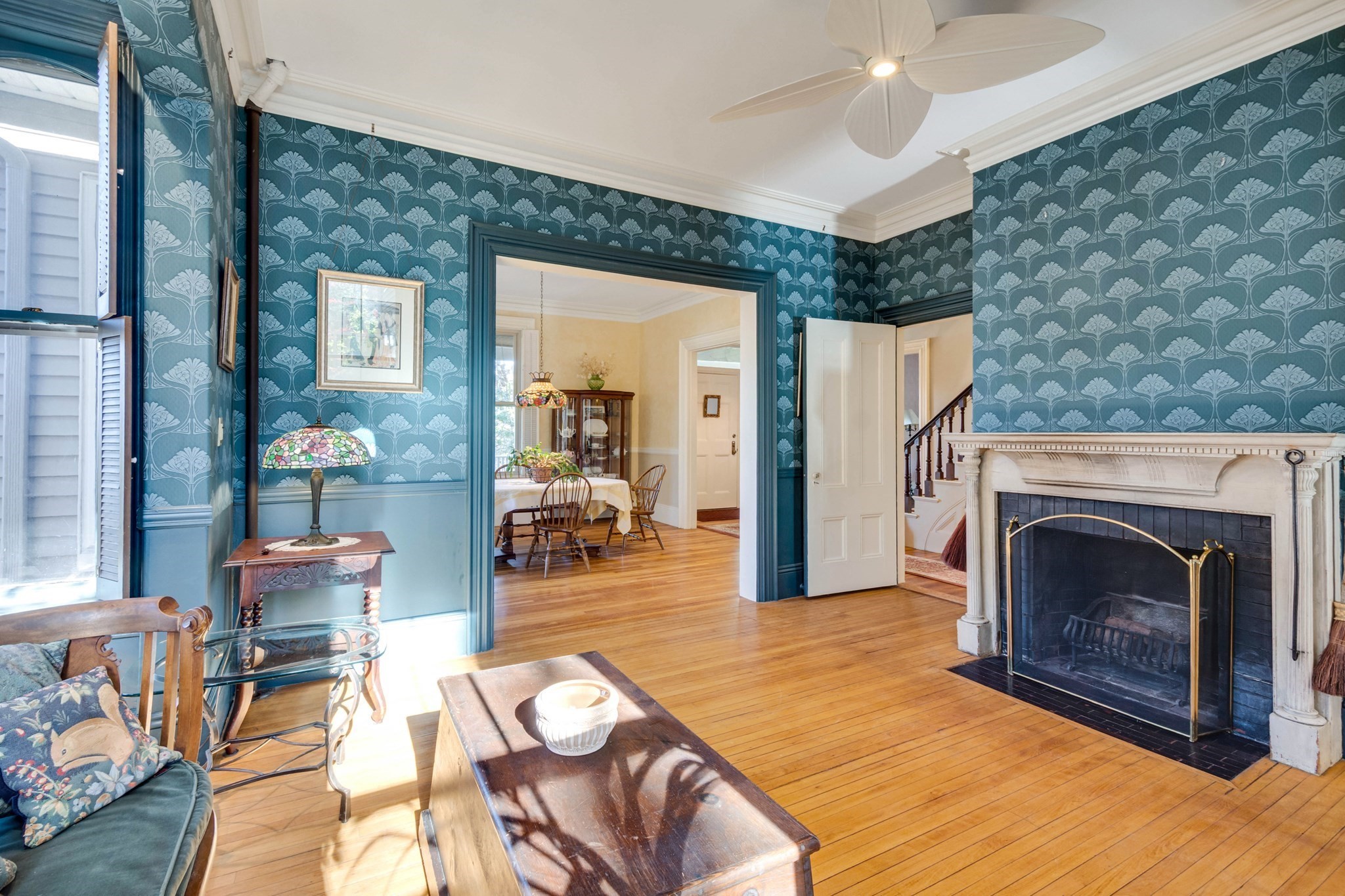 - Living Room Features: Ceiling Fan(s), Crown Molding, Fireplace, Flooring - Hardwood, Lighting - Overhead, Window(s) - Bay/Bow/Box