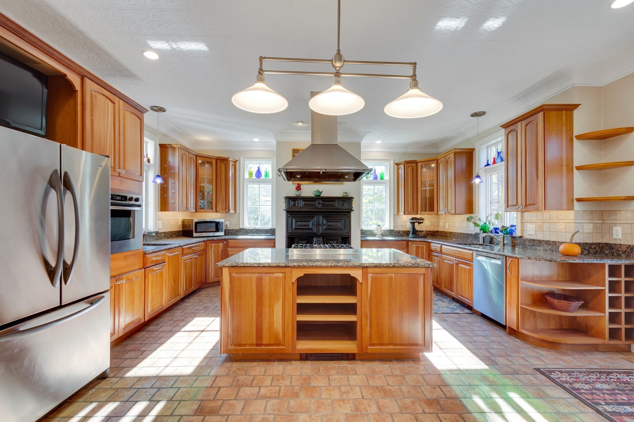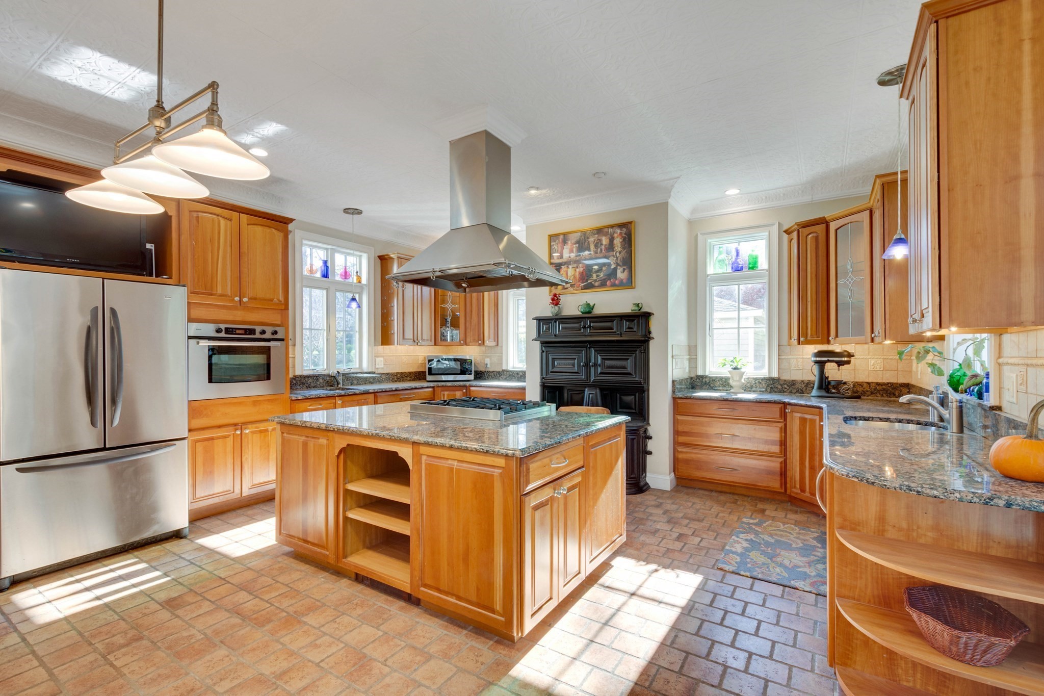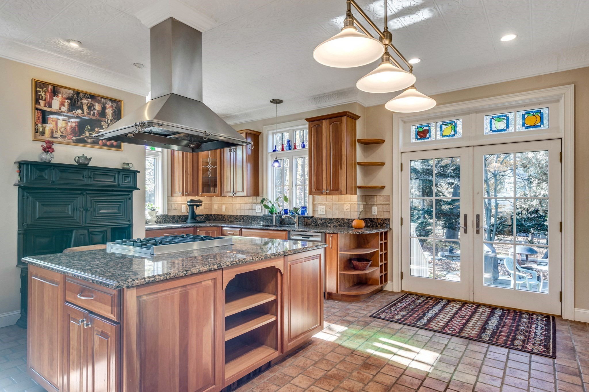 - Bathroom - Half, Countertops - Stone/Granite/Solid, Dining Area, Exterior Access, Flooring - Stone/Ceramic Tile, French Doors, Gas Stove, Kitchen Island, Lighting - Overhead, Recessed Lighting