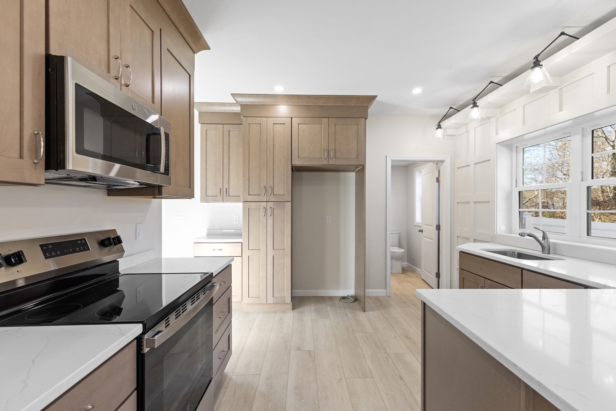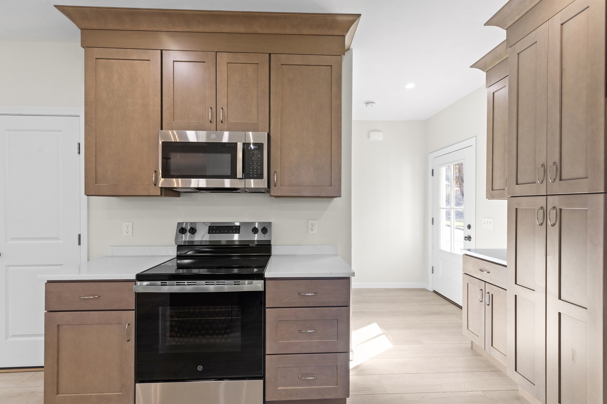 - Cabinets - Upgraded, Countertops - Stone/Granite/Solid, Crown Molding, Flooring - Vinyl, Lighting - Sconce, Open Floor Plan, Pantry, Peninsula, Recessed Lighting