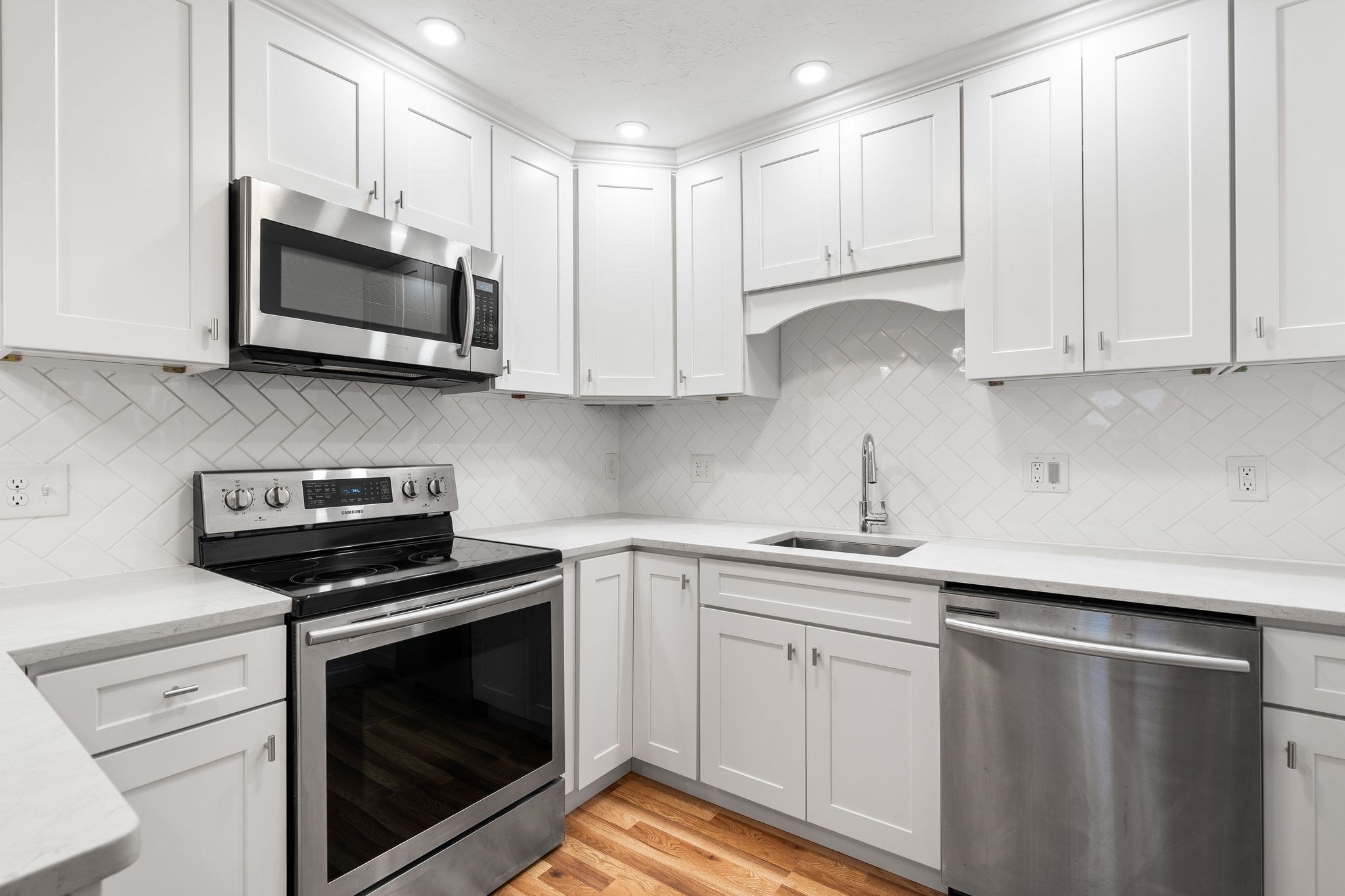 - Bathroom - Half, Breakfast Bar / Nook, Cabinets - Upgraded, Countertops - Stone/Granite/Solid, Dining Area, Fireplace, Flooring - Engineered Hardwood, Lighting - Overhead, Lighting - Pendant, Open Floor Plan, Pantry, Recessed Lighting, Remodeled, Stainless Steel Appliances