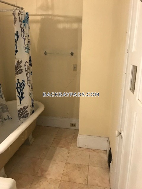 The monthly rent is $1,750 for this 1 bedroom, 2 bathroom apartment in Boston's Back Bay neighborhood.