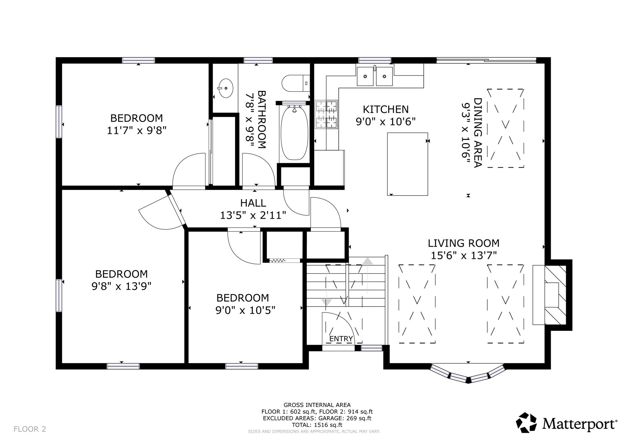 - Bedroom 2 Dimensions: 9X13