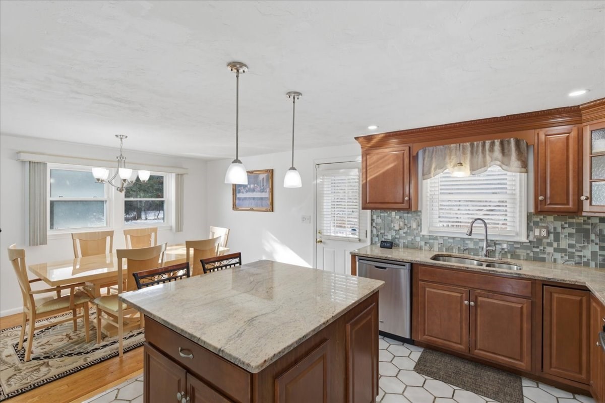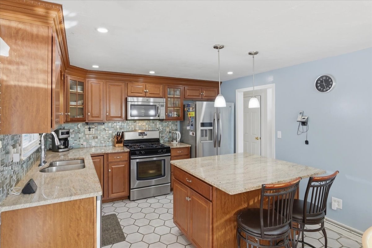 - Cabinets - Upgraded, Countertops - Stone/Granite/Solid, Crown Molding, Deck - Exterior, Dining Area, Exterior Access, Flooring - Stone/Ceramic Tile, Gas Stove, Kitchen Island, Lighting - Overhead, Open Floor Plan, Recessed Lighting, Remodeled, Stainless Steel Appliances