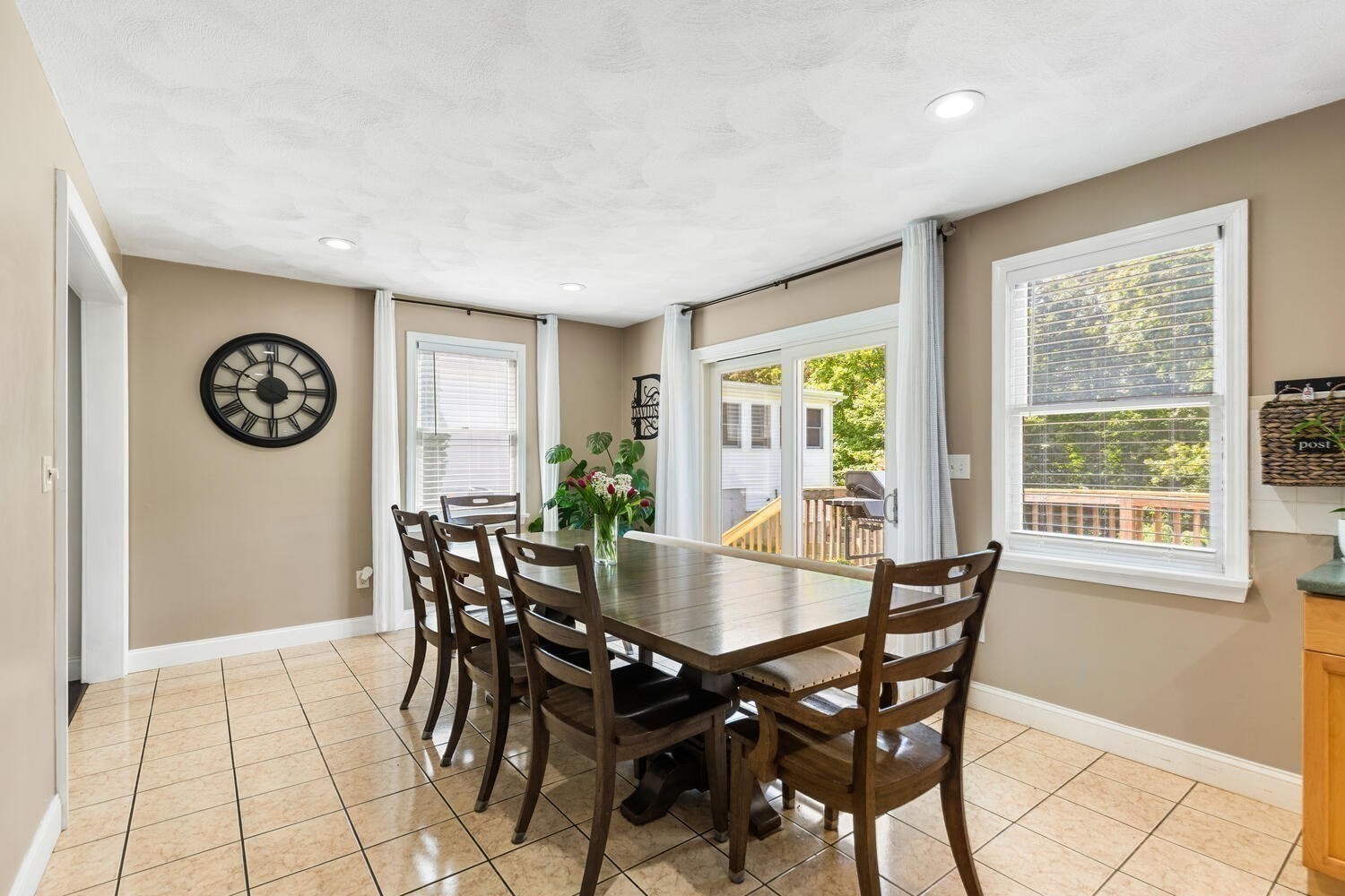 - Dining Room Features: Deck - Exterior, Exterior Access, Flooring - Stone/Ceramic Tile, Open Floor Plan, Recessed Lighting, Slider