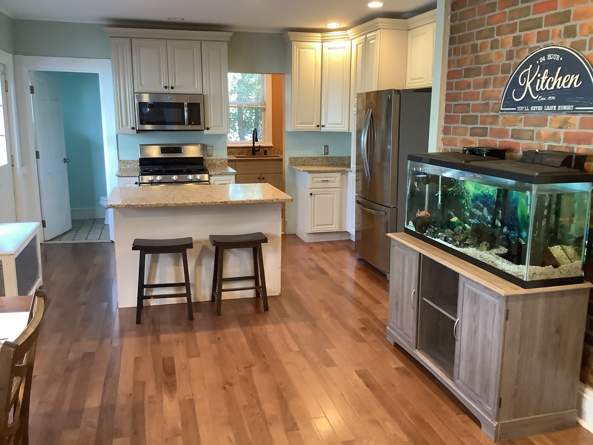 - Bathroom - Half, Cabinets - Upgraded, Closet/Cabinets - Custom Built, Countertops - Stone/Granite/Solid, Countertops - Upgraded, Deck - Exterior, Dining Area, Exterior Access, Flooring - Hardwood, Gas Stove, Kitchen Island, Lighting - Overhead, Open Floor Plan, Pantry, Recessed Lighting, Remodeled, Stainless Steel Appliances, Window(s) - Bay/Bow/Box