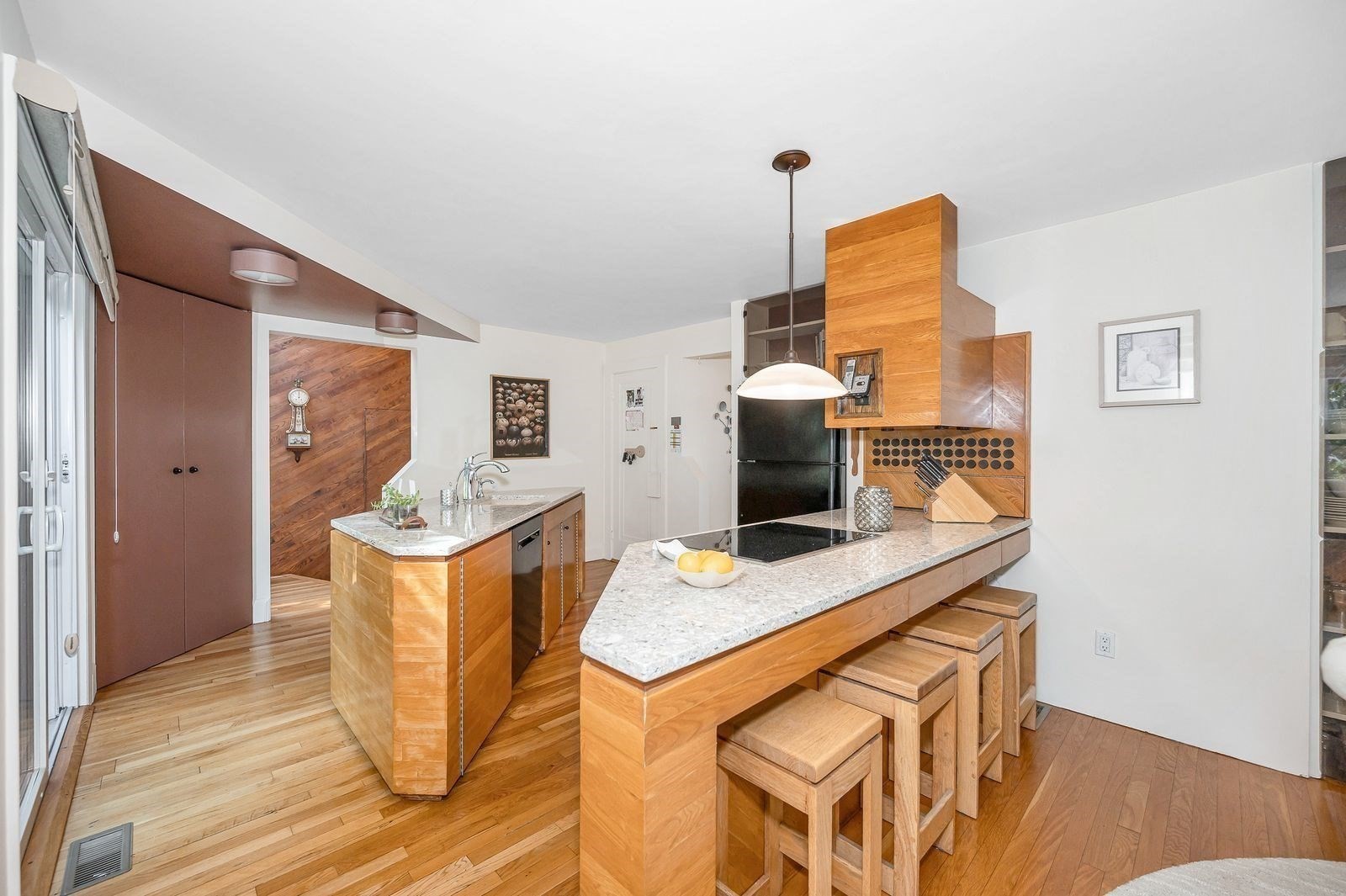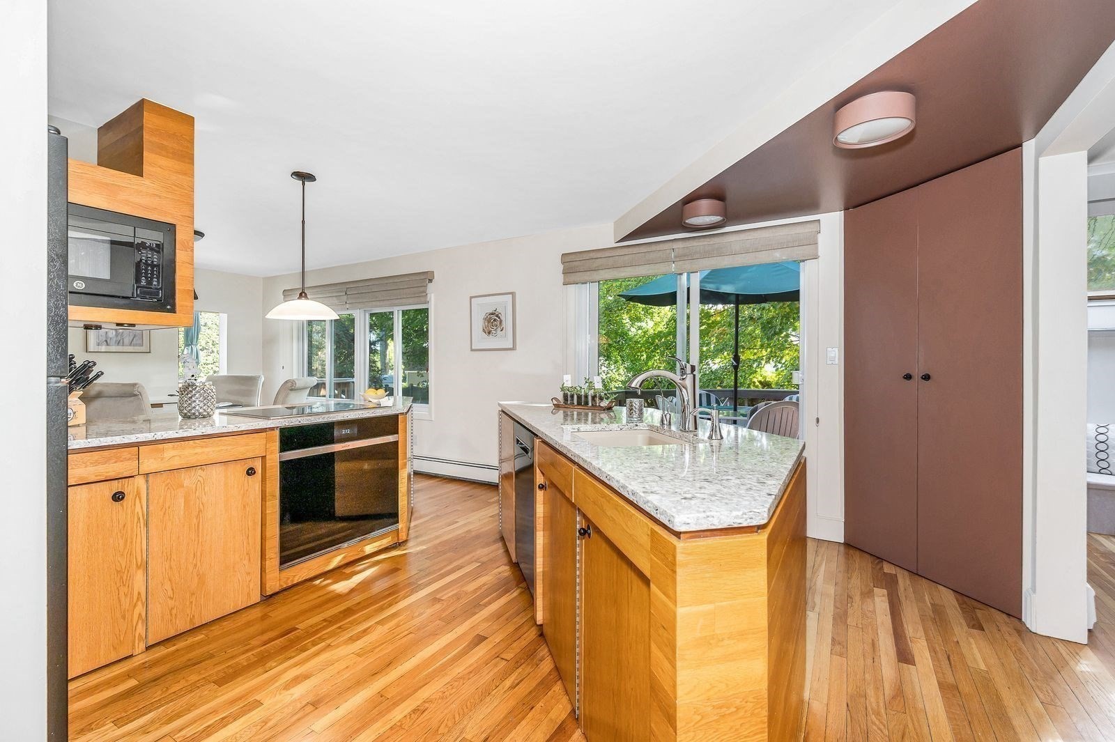 - Countertops - Stone/Granite/Solid, Flooring - Hardwood, Peninsula, Remodeled
