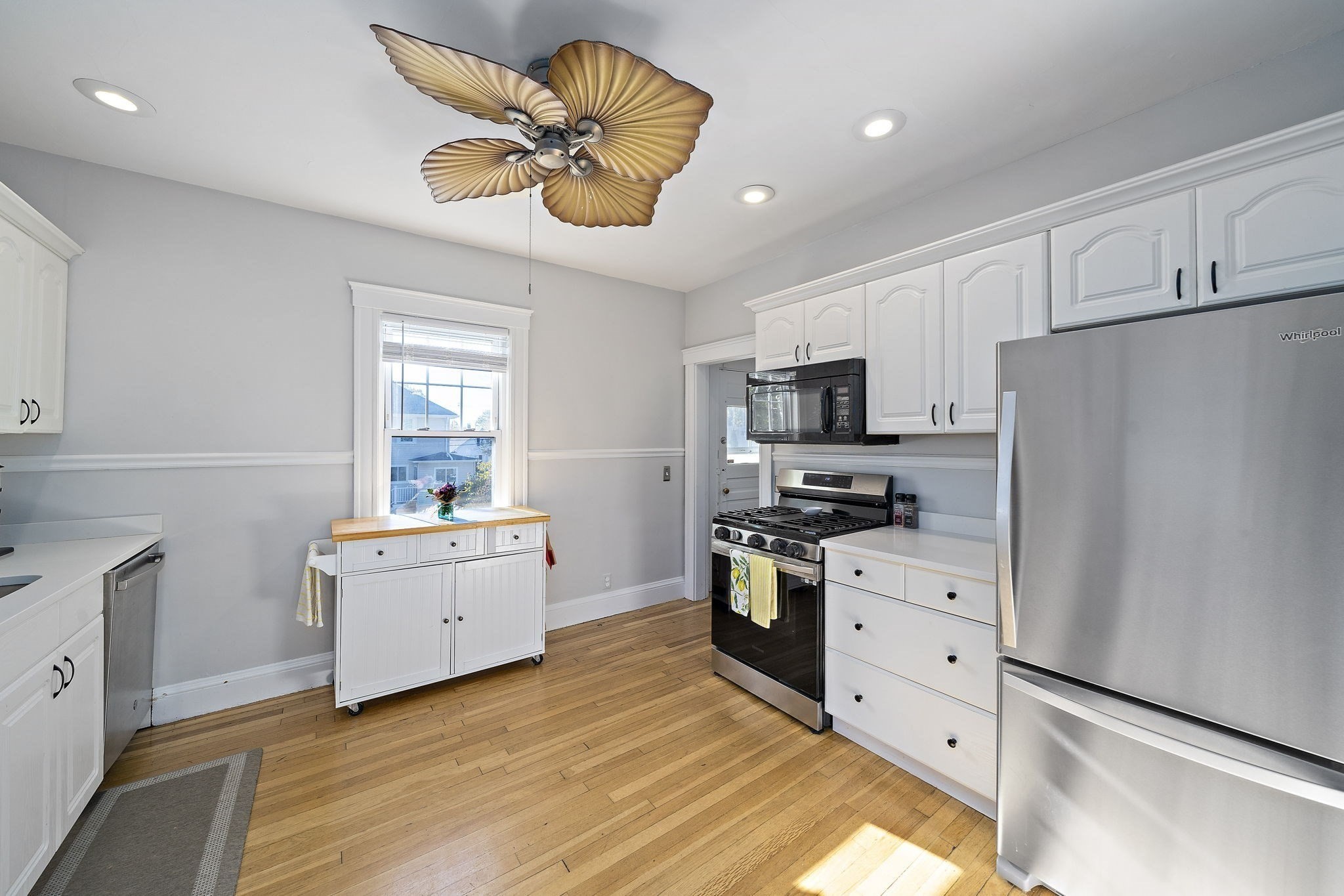 - Ceiling Fan(s), Countertops - Upgraded, Decorative Molding, Exterior Access, Flooring - Hardwood, Recessed Lighting